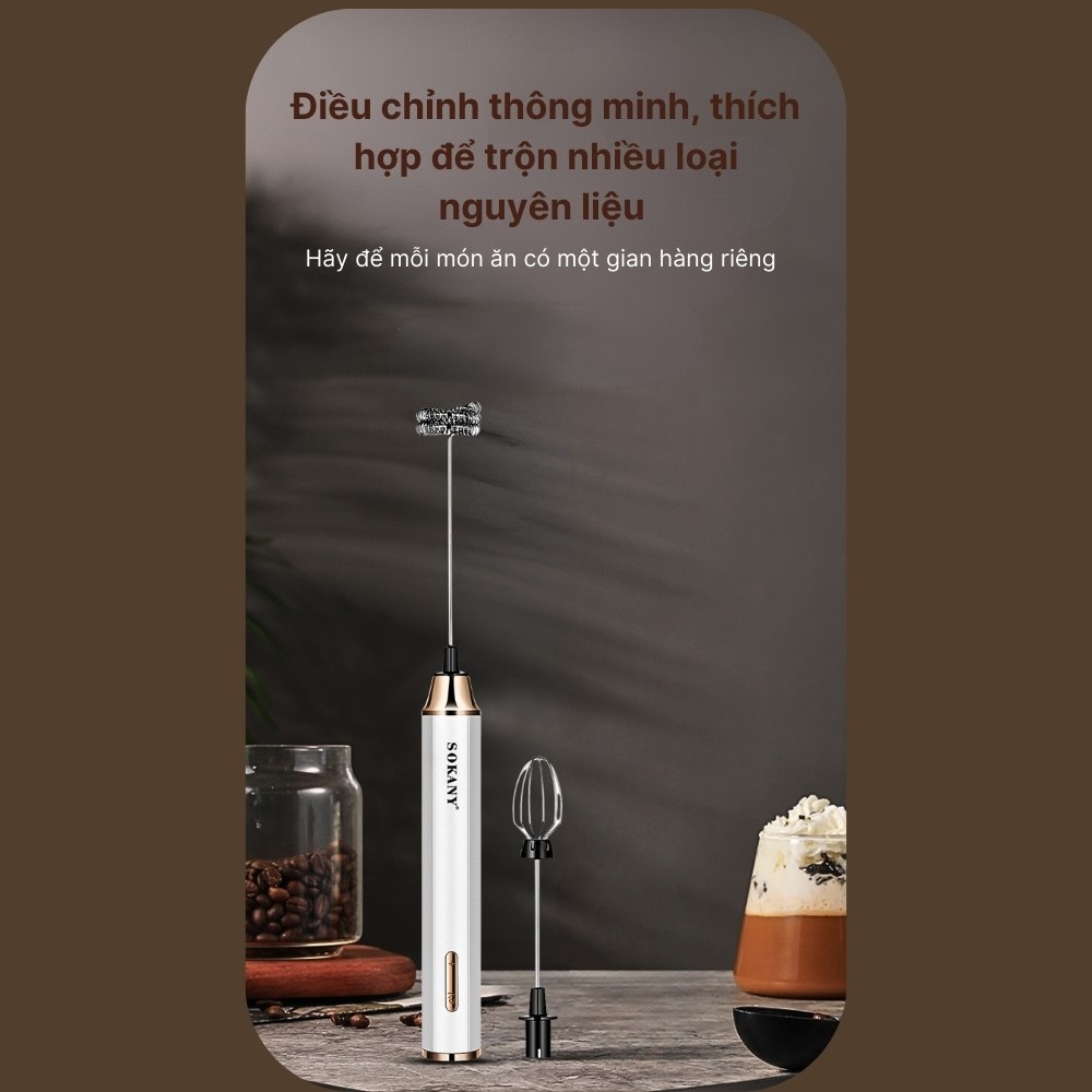 ✨Máy đánh bọt cầm tay KHÔNG DÂY SOKANY SK02018 đa năng 2in 1, đánh trứng, tạo bọt, có sạc USB tiện lợi - HÀNG CHÍNH HÃNG - DELIYA