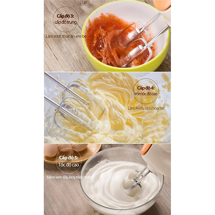 Mua tại TiktokLưu ý sử dụng: Quý khách hàng khi dùng không đánh quá 5 phút liên tục trên 1 lần đánh điều này sẽ gây ra nóng máy, giảm tuổi thọ động cơ thậm chí cháy động cơn. Nên nghĩ giữa chừng 30 giây, sau đó tiếp tục sử dụng đảm bảo cho độ bền động cơ. Xin cảm ơn quý khách hàng. Thiết kế trang nhã, màu sắc tinh tế Bear DDQ- B01K1 được thiết kế với phong cách đơn giản, màu sắc cá tính. Thiết kế này được đánh giá là thân thiện với người dùng, phù hợp với nữ giới – những người giữ hơi ấm của gia đình. Chất liệu nhựa cao cấp kết hợp với inox không gỉ an toàn cho sức khỏe người dùng lại còn dễ dàng vệ sinh sau khi sử dụng. Công suất mãnh mẽ, tiết kiệm điện năng Chiếc máy đánh trứng cầm tay Bear DDQ- B01K1 sở hữu công suất hoạt động 125W, với thiết kế trục xoay kép giúp tăng hiệu quả đánh trứng, giảm thời gian sử dụng. Từ đó tiết kiệm thời gian chuẩn bị bữa ăn cho gia đình bạn ở mức tối đa. Với thiết kế đặc biệt, bạn hoàn toàn làm chủ chiếc máy đánh trứng cầm tay với 5 mức độ lực khác nhau này để vận dụng vào các món ăn khác nhau. Tản nhiệt cực nhanh Một trong những yếu tố quan trọng mà người dùng quan tâm ở việc sử dụng những chiếc máy đánh trứng, đó là quá trình và hiệu quả tản nhiệt của máy. Khu vực tản nhiệt của Bear DDQ- B01K1 được thiết kế đa hướng, giúp làm mát máy nhanh chóng, chống quá nhiệt. Lưu ý khi sử dụng: