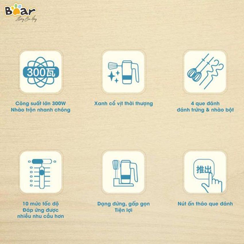 Máy đánh trứng cầm tay Bear DDQ-B02L1, 300W, 10 chế độ quay, Que đánh trứng, kem, bột, bơ,..