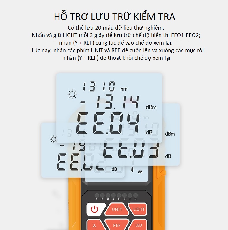 Thông số sản phẩm:Phạm Vi Bước Sóng: 800 ~ 1700Loại Đầu dò: InGaAsPhạm vi đo: -70 ~3, -50~ +20Sai số: ± 5%Bước Sóng tiêu chuẩn (nm): 850 | 1300 | 1310 | 1490 | 1550 | 1625Màn hình hiển thị: Tuyến tính...