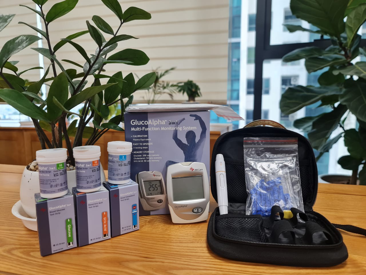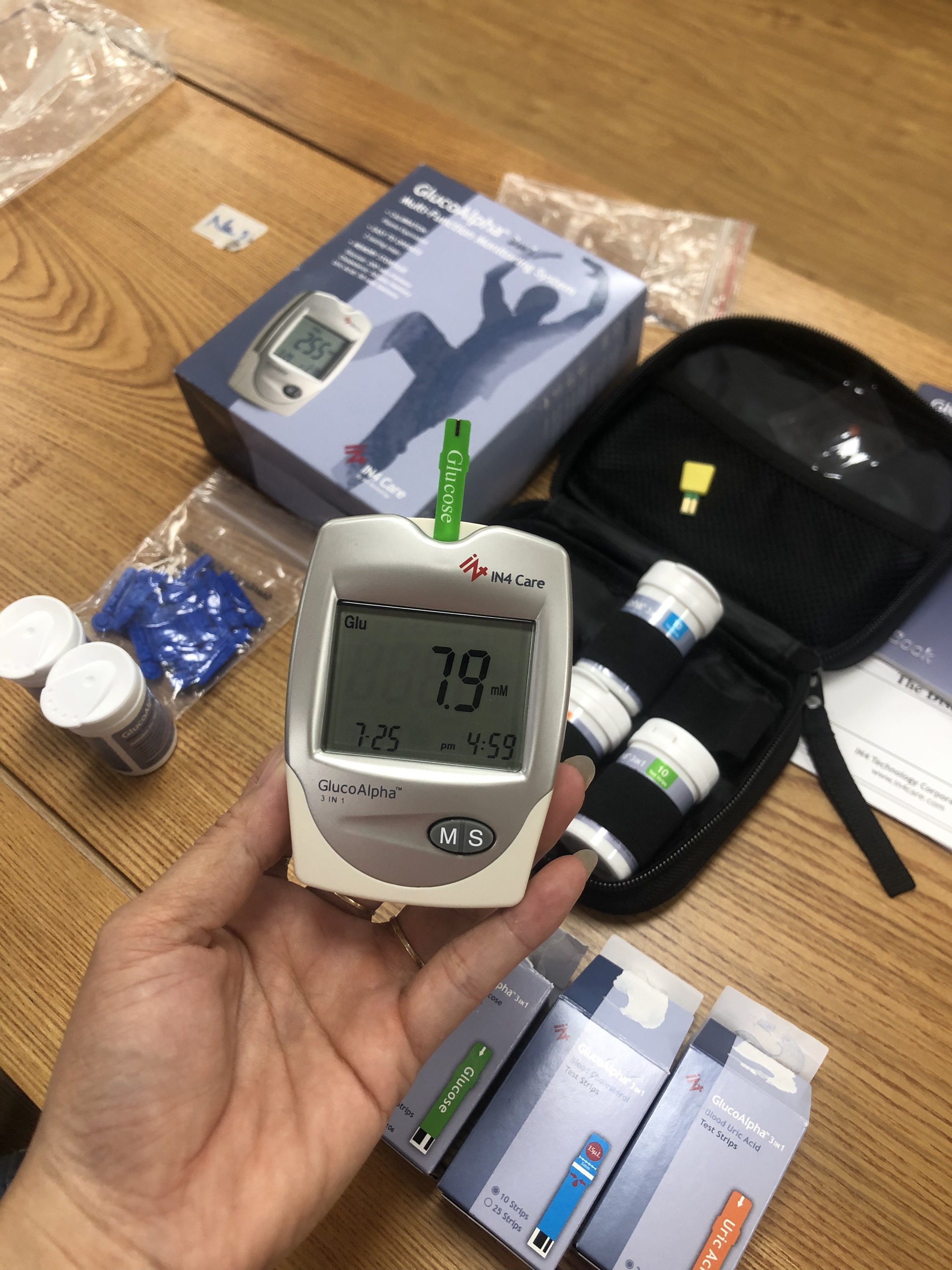 ✨Máy đo đường huyết, mỡ máu, axit uric trong máu 3 trong 1 GlucoAlpha - IN4 Technology - Đủ bộ 3 que thử đường huyết, cholesterol, acid uric