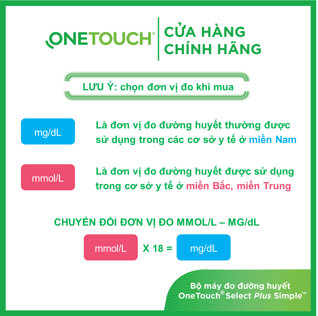 Máy đo đường huyết OneTouch Select Plus Simple (mg/dL hoặc mmol/L)