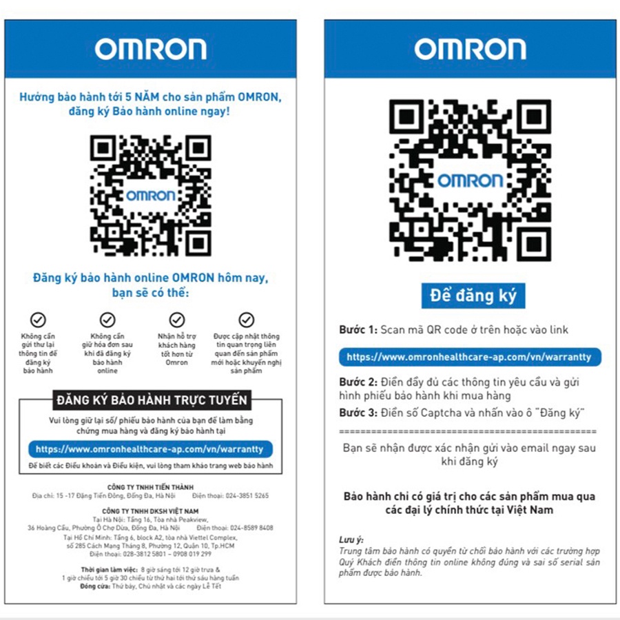 BẢO HÀNH 5 NĂM - QUÝ KHÁCH VUI LÒNG GIỮ THẺ BẢO HÀNH TRONG HỘP SẢN PHẨM ĐỂ CÓ THỂ BÀO HÀNH CHÍNH HÃNG TẠI OMRON