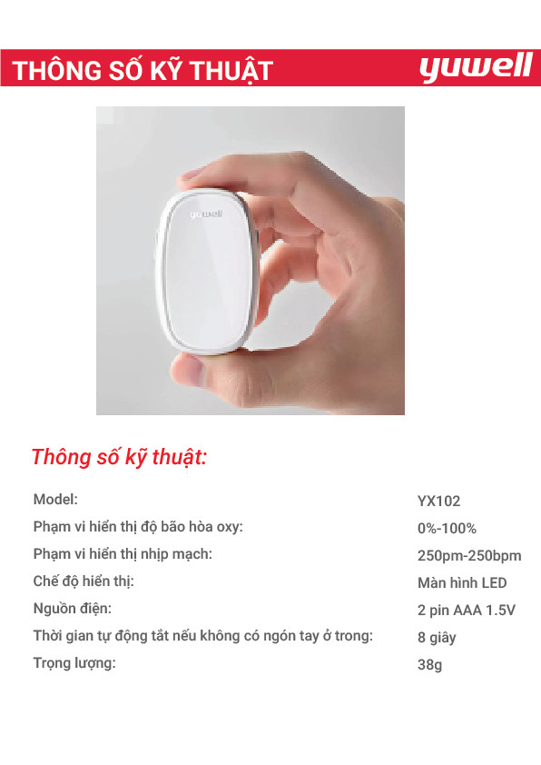 [SPO2] Máy đo nồng độ oxy trong máu Yuwell YX102