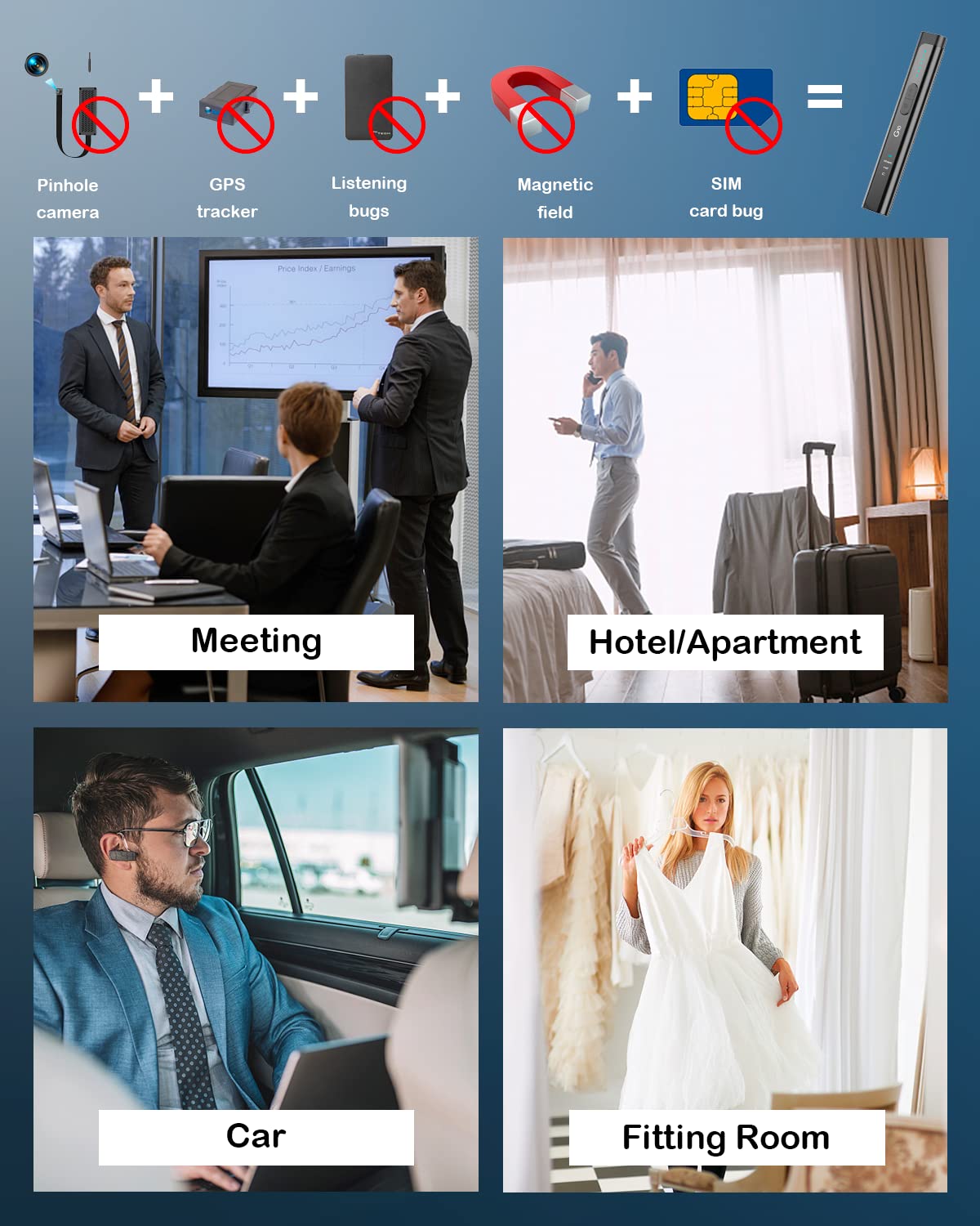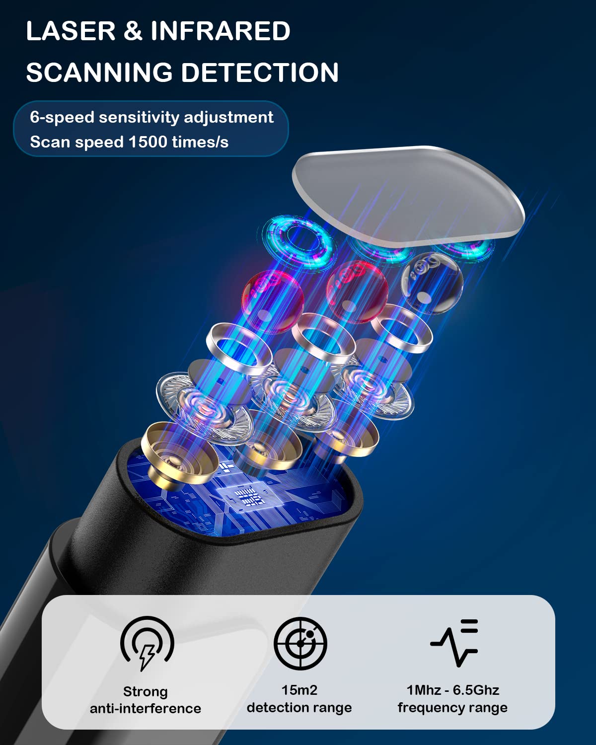 Chức năng:Sản phẩm này áp dụng phương pháp thụ động không dây tần số quét, có thể chính xác tìm ra: nghe lén thiết bị điện thoại nghe trộm, kỹ thuật số nghe trộm, thiết bị theo dõi, xe nghe trộm, came...