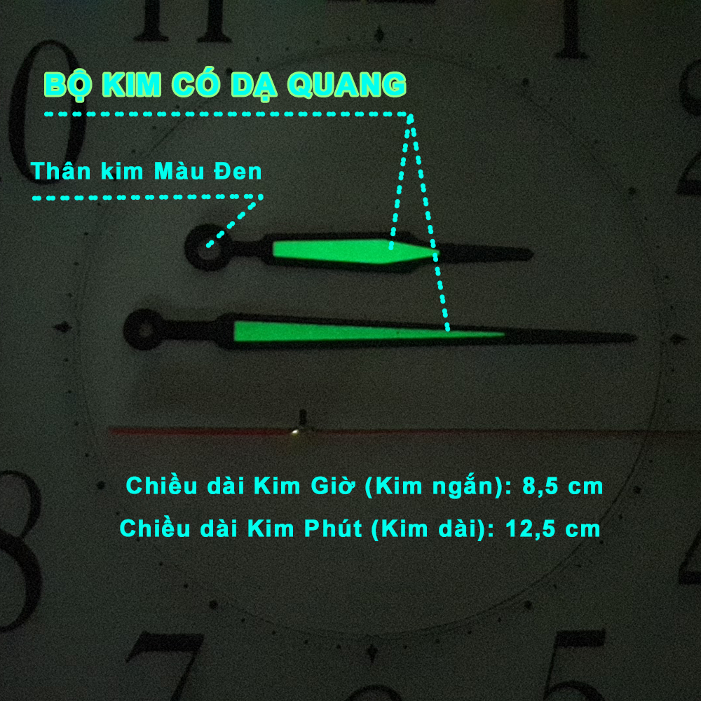 - Bộ kim và số dạ quang (*) giúp phát sáng vào ban đêm giúp dễ dàng quan sát nhận biết được thời gian dù bất kỳ thời điểm nào trong ngày . - Đồng