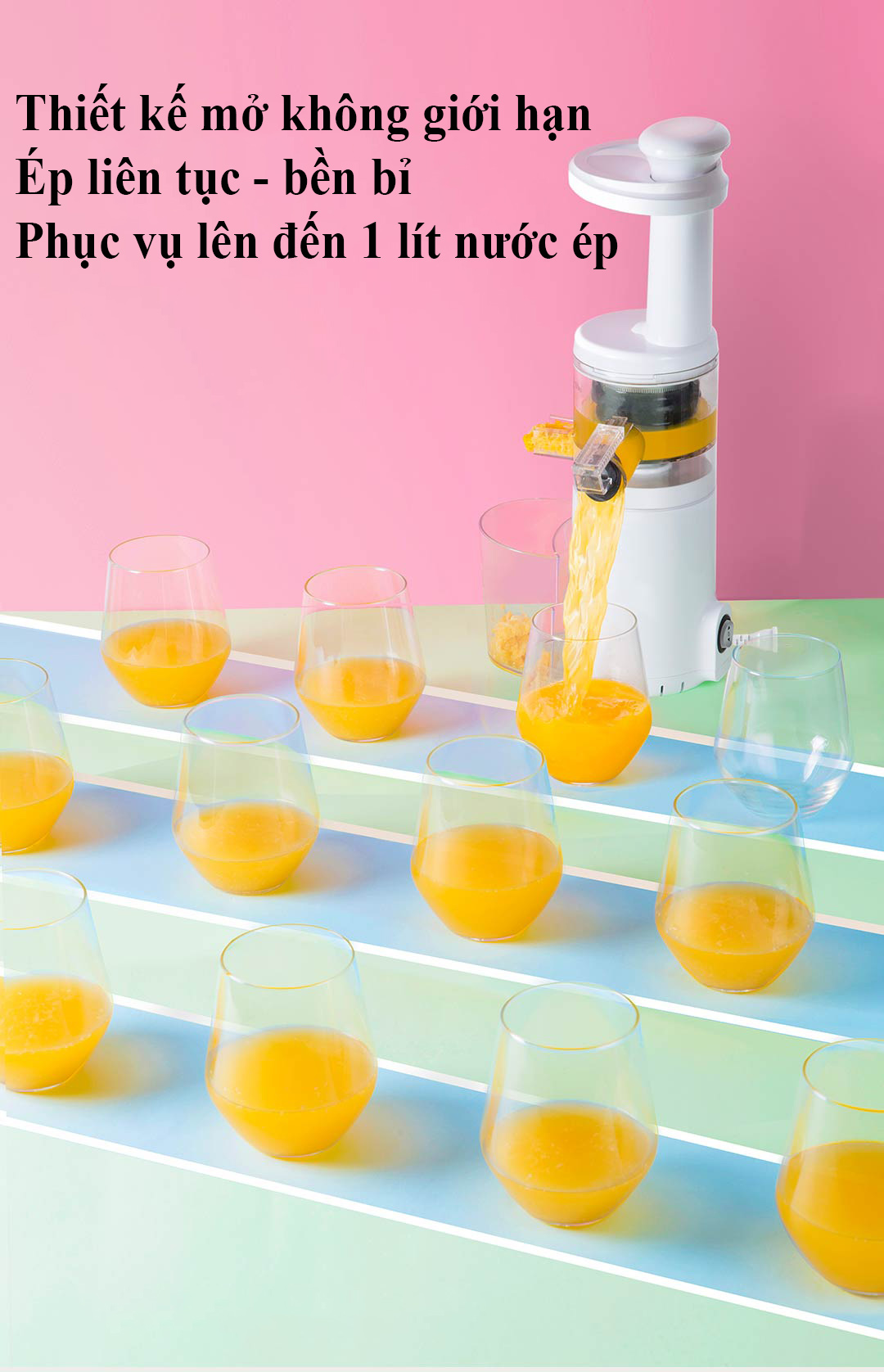 Tên sản phẩm - Máy ép chậm Mini Tính năng sản phẩm : - Thiết kế tính tế nhỏ gọn, sang trọng - Sử dụng đông cơ siêu êm khỏe ép được tất cả củ