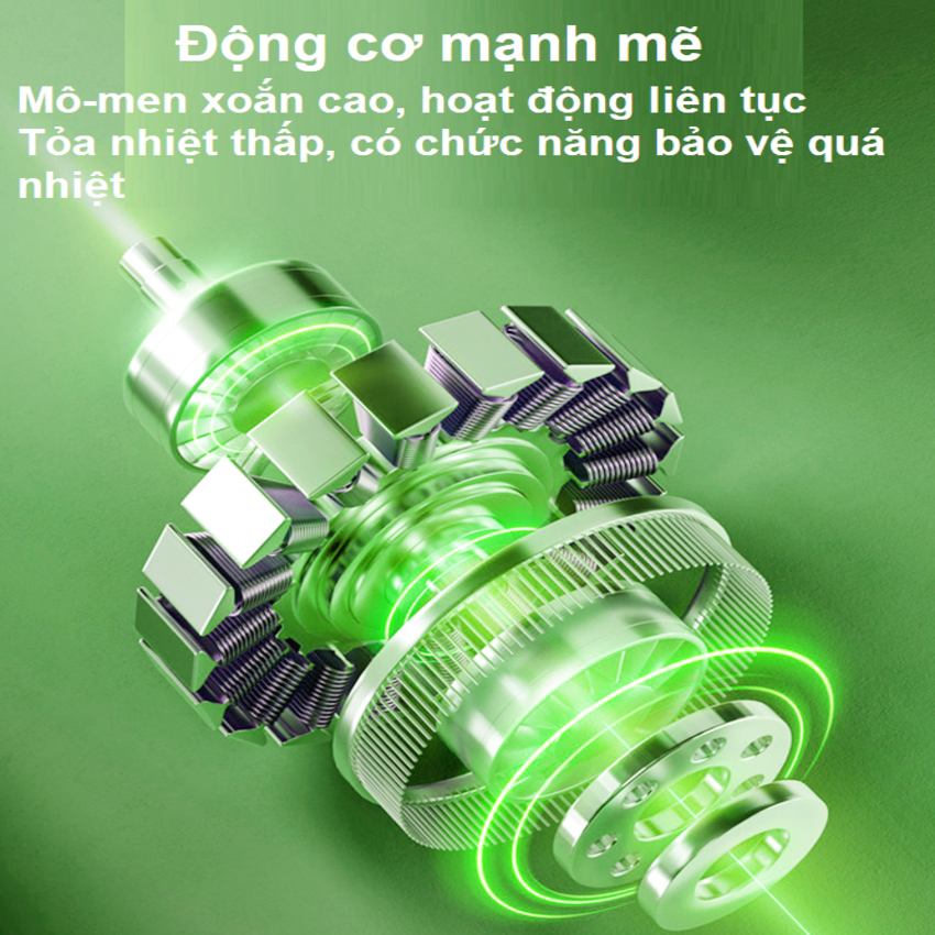 - Động cơ không chổi than, tích hợp bánh răng thép chuyển động giúp máy có thể hoạt động 24 giờ /ngày