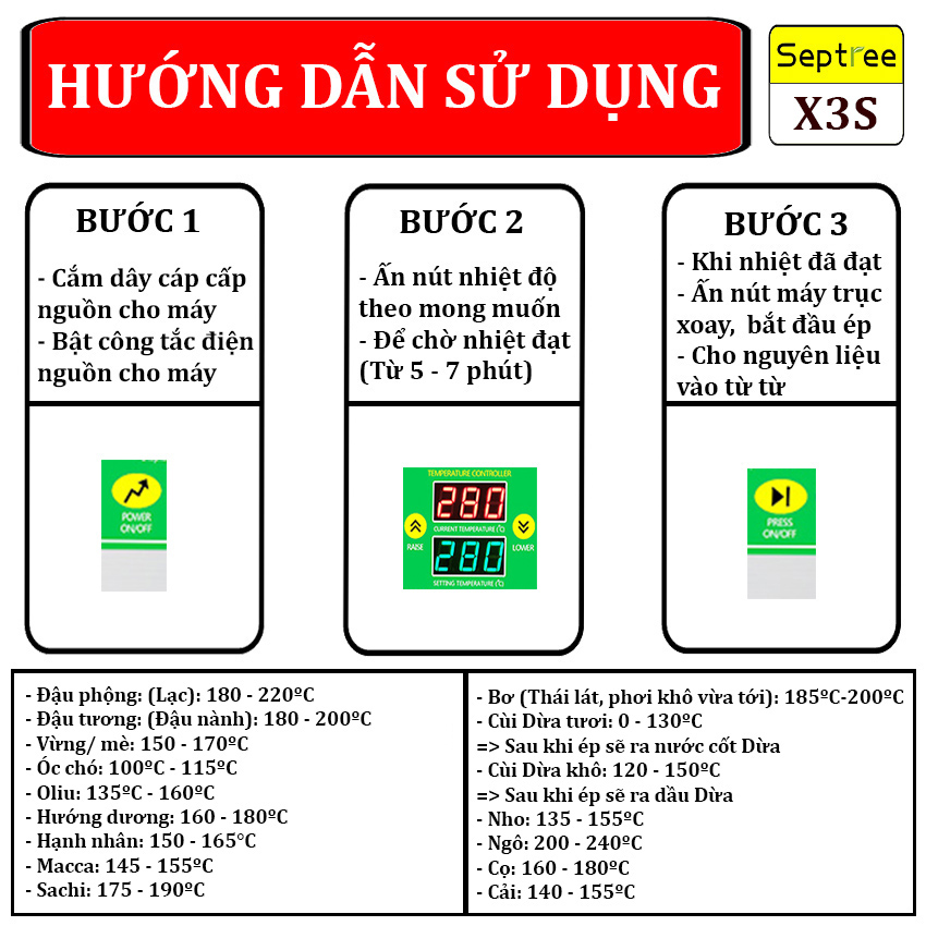 Hướng dẫn sử dụng máy ép dầu thực vật Septree X10