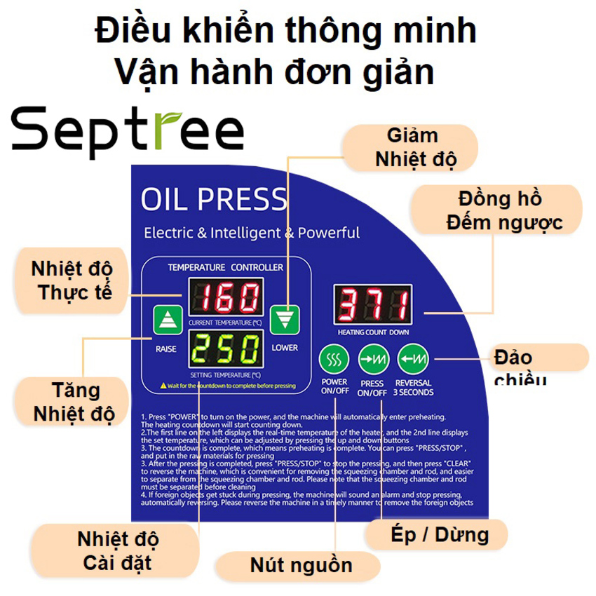 Hướng dẫn sử dụng máy ép dầu thực vật Septree X10