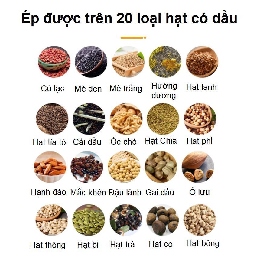 - Lưu ý: Tất cả các thông số trên chỉ là tương đối, còn sẽ tuỳ thuộc vào nguyên liệu thực tế để điều chỉnh thay đổi. Hàm lượng dầu của một số loại hạt: