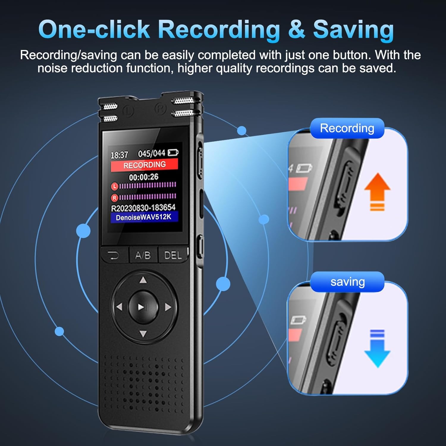 Máy ghi âm kỹ thuật số đơn giản đầy phong cách này có thể được mang đi bất cứ đâu để ghi lại âm thanh trong các bài giảng, cuộc họp, cuộc trò chuyện và