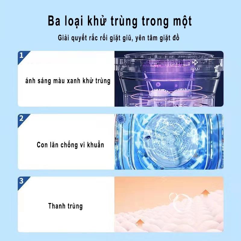 ✨Máy giặt mini cao cấp gấp gọn tự động thông minh vắt khô khử khuẩn bằng ánh sáng xanh Blue Ag tiện lợi phù hợp với mọi g