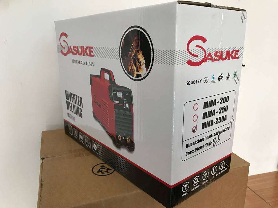 Máy hàn Sasuke Mig 250A sử dụng que hàn đường kính 1.6mm - 4.0mm Máy hàn mig Sasuke 250A là dòng máy hàn điện tử nhỏ gọn với trọng lượng chỉ 11.6kg giúp xách tay di chuyển khi