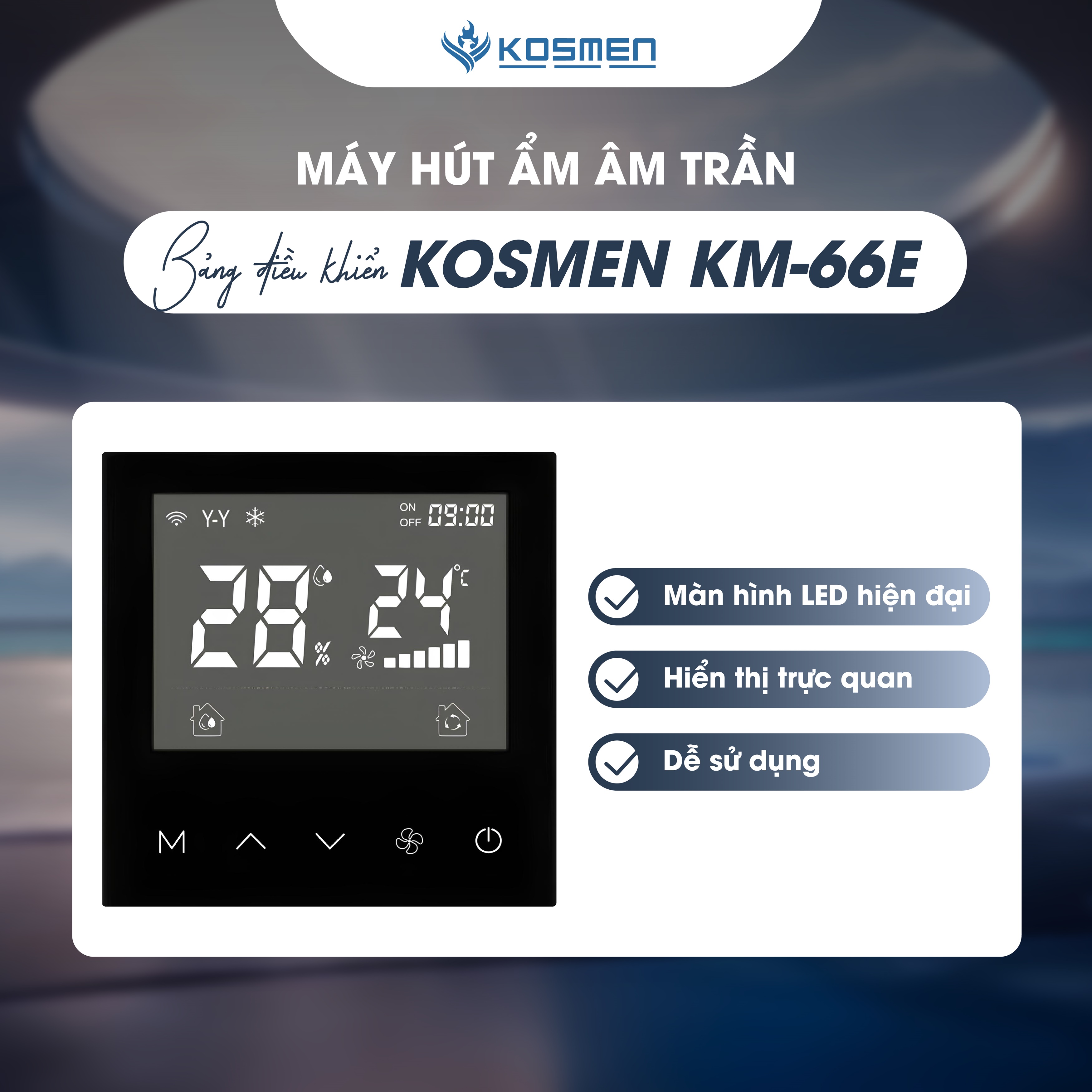 ✨Máy Hút Ẩm Âm Trần Kosmen KM-66E Màn Hình Cảm Ứng Kỹ Thuật Số - Hàng Chính Hãng BH 24 tháng