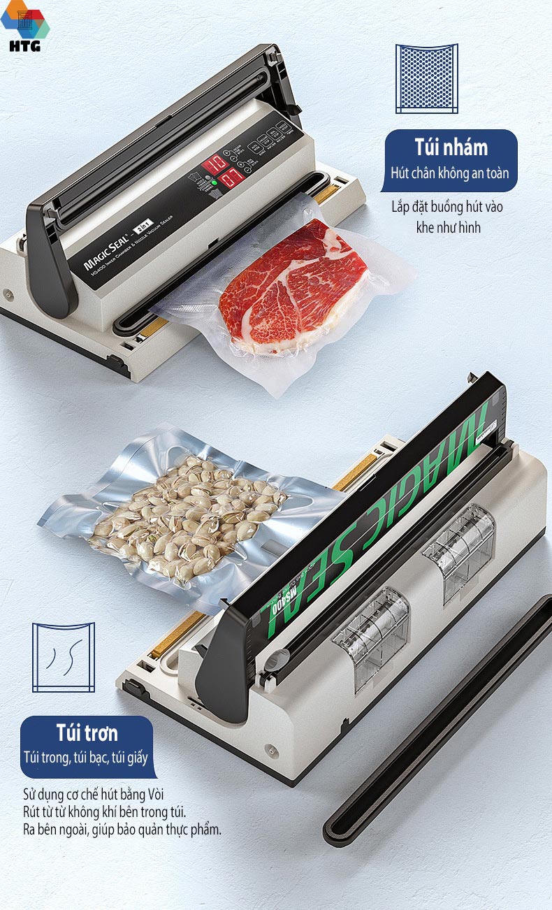 ✨Máy hút chân không thực phẩm Magic Seal MS400 không kén túi, hút khô và hút nước, mối hàn dính lớn 8mm kín kẽ, hút mạnh mẽ, tự động và bán tự động, hàng chính hãng