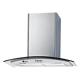 Kiểu máy kính gắn tường - mặt kính cong Chất liệu Inox - kính Màn hình LCD Điều khiển bằng cảm ứng - hẹn giờ tắt Khử mùi bằng than hoạt tính, ống thoát Ø150