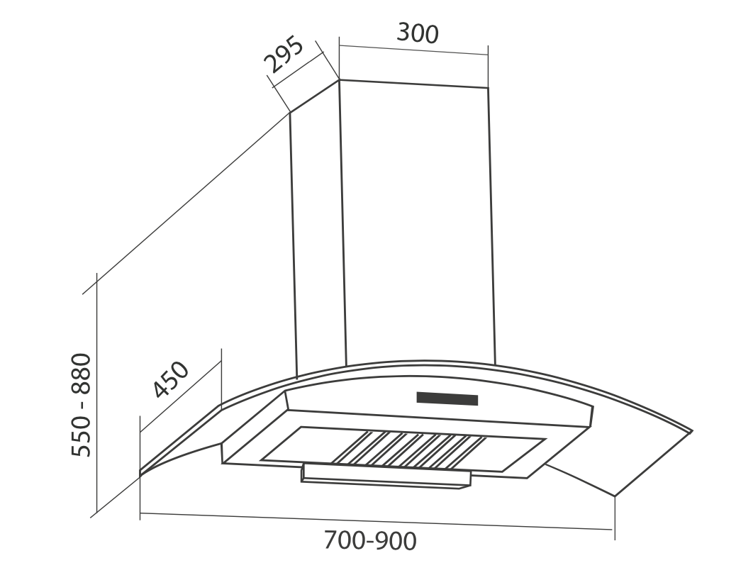 Chất liệu: Inox – Kính Công suất động cơ: 198W Kích thước: 900mm Ống thoát: Ø150mm