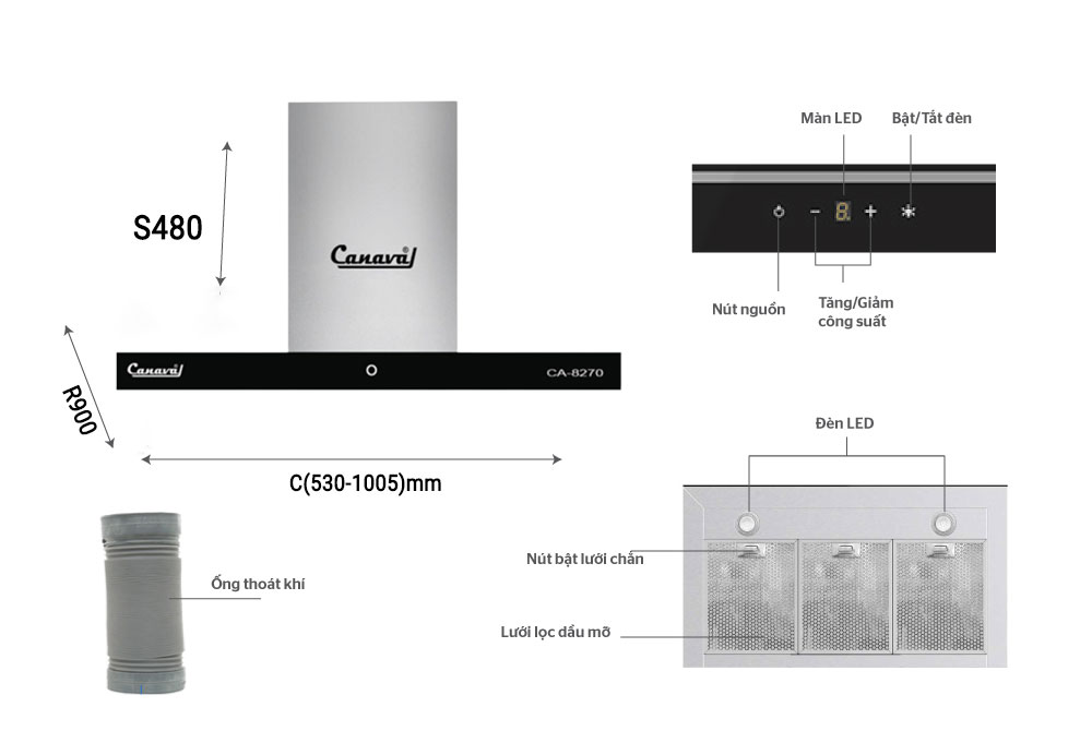 ✨Máy hút mùi hình chữ T CANAVAL CA8270 - Hàng nhập khẩu