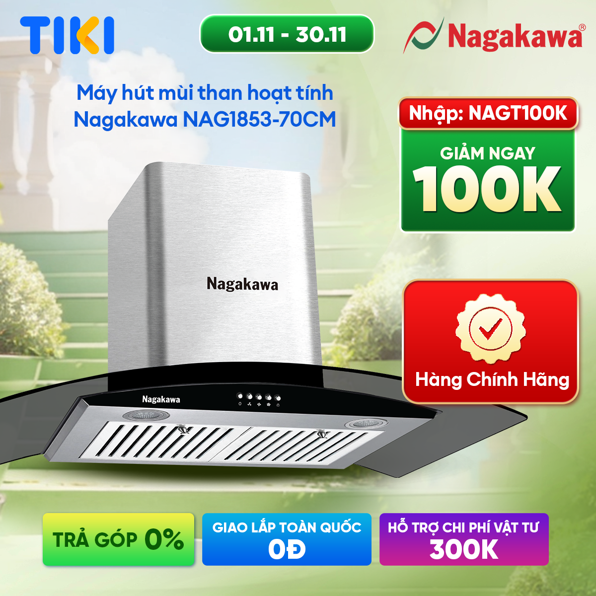 Máy hút mùi cao cấp Nagakawa NAG1853-70CM làm từ kính cường lực cao cấp siêu bền cùng chất liệu kim loại tráng men phủ lớp sơn tĩnh điện đảm bảo an toàn cho người sử dụng.