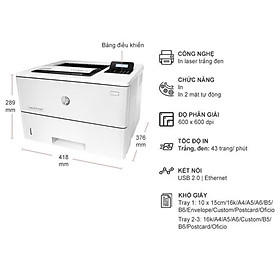 Thông số kỹ thuật máy in Hp 611Dn: - Loại máy in: trắng đen laser đơn năng - Khổ giấy hỗ trợ: A4, A5 - Màn hình cảm ứng 4.3 inch - Tốc độ in: 61