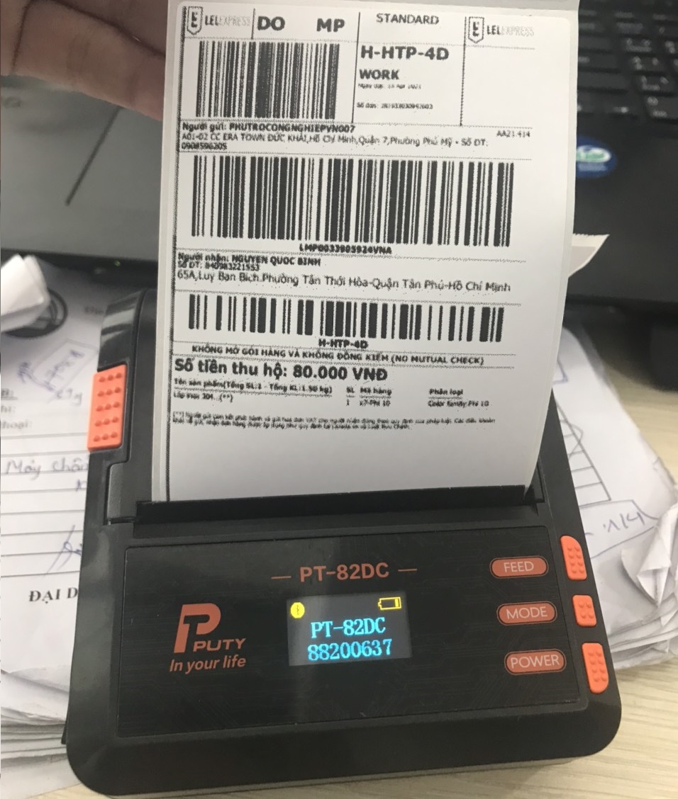 ✨Máy in nhãn vận chuyển, in vận đơn, in bill di động bluetooth 80mm PUTY PT-82DC cho Android và iOS ( Hàng nhập khẩu)
