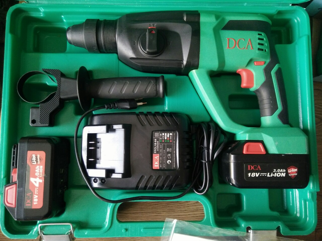 Thương hiệu: DCA Dung lượng pin 18V/4.0Ah x 2 khả năng khoan tối đa gồm khoan sắt: 12mm khoan gỗ: 28mm khoan bê tông: 24mm tần số đập:0-4900 () tốc độ không tải tối đa: 0-1100 v/p trọng lượng: 3.1 kg.