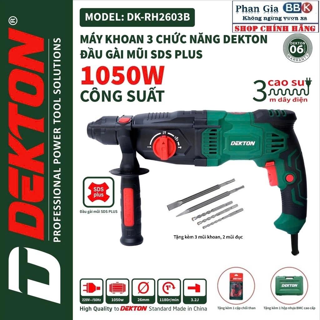 Máy khoan bê tông 26mm DEKTON DK-RH2603B công suất 1050W lực đập 3.2J, Khoan 3 chức năng.