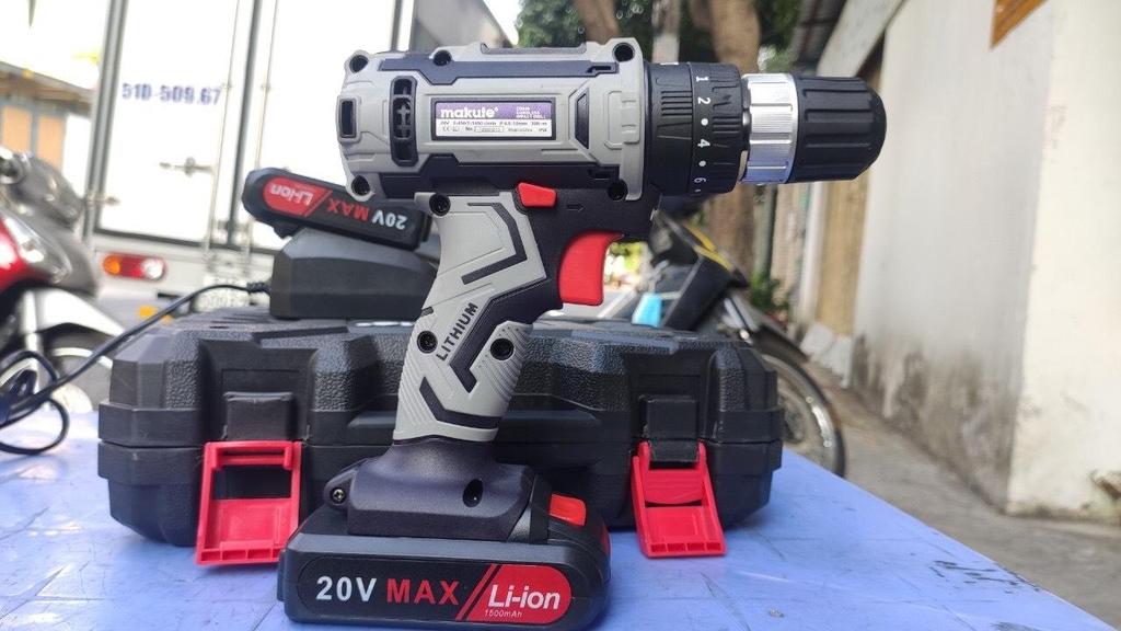 Ưu điểm nổi bật của máy khoan pin 20V Makute CD029 Makute CD029 đi kèm 2 pin sạc Li-ion 20V 1.5Ah, bộ sạc và hộp đựng chắc chắn.  Trọn bộ sản phẩm Máy khoan pin 20V Makute