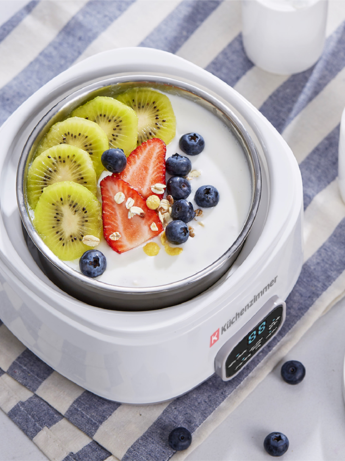 Mua tại TiktokKUCHENZIMMER "Sữa chua tự làm, ngon tuyệt vời!" Điểm nổi bật sản phẩm Đa chức năng: Làm sữa chua, cơm rượu, lên men đậu với độ tiện lợi cao. Dung tích tối ưu: 1L, phù hợp cho gia đình. Giữ nhiệt độ ổn định: Đảm bảo chất lượng lên men hoàn hảo. Thông số sản phẩm Mã sản phẩm: 013581 Dung tích: 1L Kích thước: 19 cm x 19 cm x 16 cm Chất liệu: Thép cán nguội phủ Teflon, silicone Điện áp: 110 V Tần số: 60 Hz Công suất: 15 W Hướng dẫn sử dụng Chuẩn bị: Chuẩn bị nguyên liệu phù hợp cho sữa chua, cơm rượu, hoặc lên men đậu. Đổ nguyên liệu: Đổ nguyên liệu vào hộp đựng bên trong máy. Cài đặt: Chọn thời gian lên men (thường từ 6-8 tiếng) và chức năng tương ứng. Bắt đầu: Nhấn nút xác nhận để máy bắt đầu quá trình, tự động giữ nhiệt độ phù hợp. Hướng dẫn bảo quản Rửa sạch các bộ phận tháo rời như hộp đựng, nắp đậy, và khay chứa sau mỗi lần sử dụng. Lau khô máy trước khi cất giữ. Bảo quản máy ở nơi khô ráo, tránh tiếp xúc với nước hoặc môi trường ẩm.