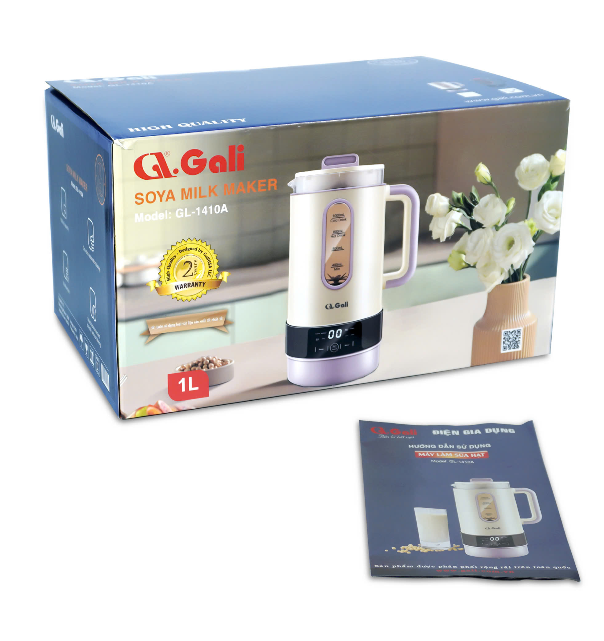 [HỎA TỐC HCM] Máy làm sữa hạt đa năng Gali GL-1410A 1 lít 800w. Bảo hành chính hãng 24 tháng Với 9 chế độ nấu được thiết lập sẵn, giúp bạn dễ dàng lựa chọn theo từng phương pháp nấu chuyên biệt, để việc nấu nướng tại nhà không chỉ đơn giản nhanh chóng mà vẫn đảm bảo được dinh dưỡng trọn vẹn.Thiết kế nhỏ gọn, màu sắc tinh tế. Máy làm sữa hạt đa năng Bigger là sản phẩm phù hợp cho mọi căn bếp của gia đình Việt Đặc điểm máy chế biến sữa hạt Gali GL-1410A 1 lít 800w Nguồn điện: 220V/50Hz. Dung tích: 1 lít. Công suất xay 300W.Công xuất nấu 800W. Thiết kế thân 2 lớp, trong thủy tinh, ngoài nhựa nguyên sinh, giúp chống nóng và tiết kiệm năng lượng. Dao xay 10 lưỡi inox 304 sắc bén, ít bị mài mòn, bền bỉ theo thời gian, bộ phận đun sôi phủ men chống dính dễ dàng vệ sinh. Đa chức năng nấu các loại sữa hạt, cháo, súp, hấp thực phẩm theo nhu cầu, nấu ngắt hoàn toàn tự động. Xay các loại rau củ quả và sinh tố. Chọn chức năng cảm ứng, hiển thị bằng màn hình quan sát dễ dàng. Hẹn thời gian máy hoạt chế biến theo nhu cầu. Sản phẩm được bảo hành 2 năm kể từ ngày mua hàng. Kích thước : 360 x 240 x 200 (mm) Nặng : 2,3 kg (Bao gồm vỏ hộp sản phẩm) CẢM ƠN QUÝ KHÁCH ĐÃ TIN TƯỞNG VÀ LỰA CHỌN SẢN PHẨM CỦA CHÚNG TÔI CHÍNH SÁCH BÁN HÀNG GALI Gian hàng chính hãng chính thức thương hiệu Gali Hỗ trợ Freeship, tặng Voucher, mã giảm giá, giảm giá khi mua số lượng từ 2 sản phẩm trở lên CHÍNH SÁCH BẢO HÀNH Bảo hành theo tiêu chuẩn nhà sản xuất: Từ 12 tháng đến 36 tháng ( Tuỳ dòng sản phẩm ) Hỗ trợ đổi trả hàng 7 ngày đối với sản phẩm lỗi nhà sản xuất Phiếu bảo hành, tem bảo hành chính hãng đi kèm mỗi sản phẩm Điều kiện bảo hành chi tiết: Quý khách vui lòng tham khảo chi tiết GALI OFFICIAL CAM KẾT Hàng Nhập khẩu chính ngạch, mới 100%, nguyên tem NSX. Đảm bảo kiểm tra sản phẩm kỹ càng trước khi giao đến tay khách hàng. 1 đổi 1 trong vòng 15 ngày nếu phát sinh lỗi từ nhà sản xuất. Tư vấn nhiệt tình, chu đáo, luôn lắng nghe khách hàng. Cam kết giá tốt nhất thị trường. ️Trân thành cảm ơn quý khách hàng đã ủng hộ shop ️Để lại đánh giá 5️ giúp shop nếu bạn hài lòng và có trải nghiệm tuyệt vời khi mua hàng tại shop. Nếu có bất kỳ vấn đề gì về sản phẩm hãy liên hệ shop ngay để được tư vấn nhanh và tốt nhất nhé!
