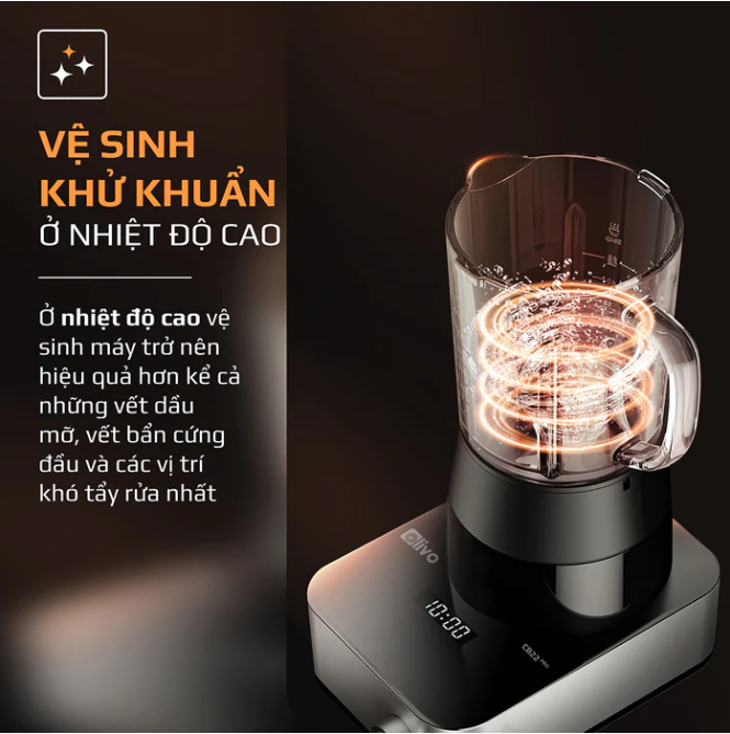 - Olivo CB22 PRO được trang bị tính năng vệ sinh máy độc quyền bằng nhiệt độ cao và vòng xoay công suất 1000w, có thể khử khuẩn, làm sạch cối xay một cách nhanh chóng và tiện lợi giúp sử dụng sản phẩm được an toàn vệ sinh thực phẩm một cách tốt nhất.