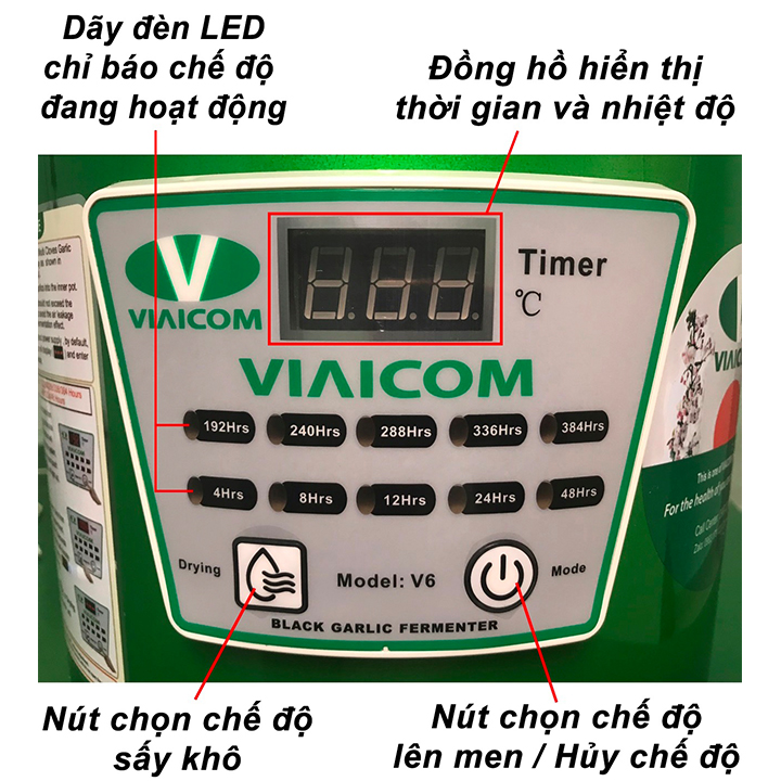 - Bạn không thể cảm nhận hết niềm hạnh phúc khi tự tay dễ dàng làm ra tỏi đen bởi chiếc máy làm tỏi đen thông minh nhất, tiết kiệm nhất, năng suất nhất, trực tiếp từ thương hiệu hàng đầu Việt Nam. NHỮNG KHÁC BIỆT CHỈ CÓ Ở MÁY LÀM TỎI ĐEN VIAICOM V6 LÀ GÌ? Với 5 chế độ cài đặt thời gian lên men thông minh, giúp bạn có thể làm tỏi đen từ tất cả các loại tỏi nguyên liệu có kích thước khác nhau. Với 5 chế độ sấy riêng biệt, tỏi đen thành phẩm không còn bị ướt như trước. Bạn hoàn toàn có thể sấy tỏi đen khô dẻo theo ý muốn. Hiện tại ở Việt Nam chưa có loại máy và nồi làm tỏi đen nào có các tính năng thông minh và hiệu quả đến vậy. BẢNG ĐIỀU KHIỂN CỦA VIAICOM V6 HIỂN THỊ THÔNG MINH NHƯ THẾ NÀO? Các chế độ lên men và sấy khô được hiển thị cụ thể trên đồng hồ và các đèn LED. 2 nút bấm chọn chế độ riêng biệt được thiết kế nhô lên và to hơn, giúp bấm dễ dàng hơn. Chi tiết, đầy đủ nhưng lại rất đơn giản và dễ sử dụng. Tại sao người Nhật Bản lại tự làm tỏi đen để ăn hàng ngày? >>> Xem ngay video dưới đây để giải đáp những thắc mắc này! KHAY XẾP TỎI 4 TẦNG CÓ THỂ THÁO RỜI DUY NHẤT TẠI VIỆT NAM, TẠI SAO? Có thể ráp khay xếp tỏi 3 hoặc 4 tầng tùy ý (duy nhất chỉ có ở VIAICOM). Dễ dàng tháo lắp và vệ sinh. Ai cũng có thể thao tác dễ dàng. CÔNG NGHỆ KHÍ NÓNG 360 ĐỘ THÔNG MINH
