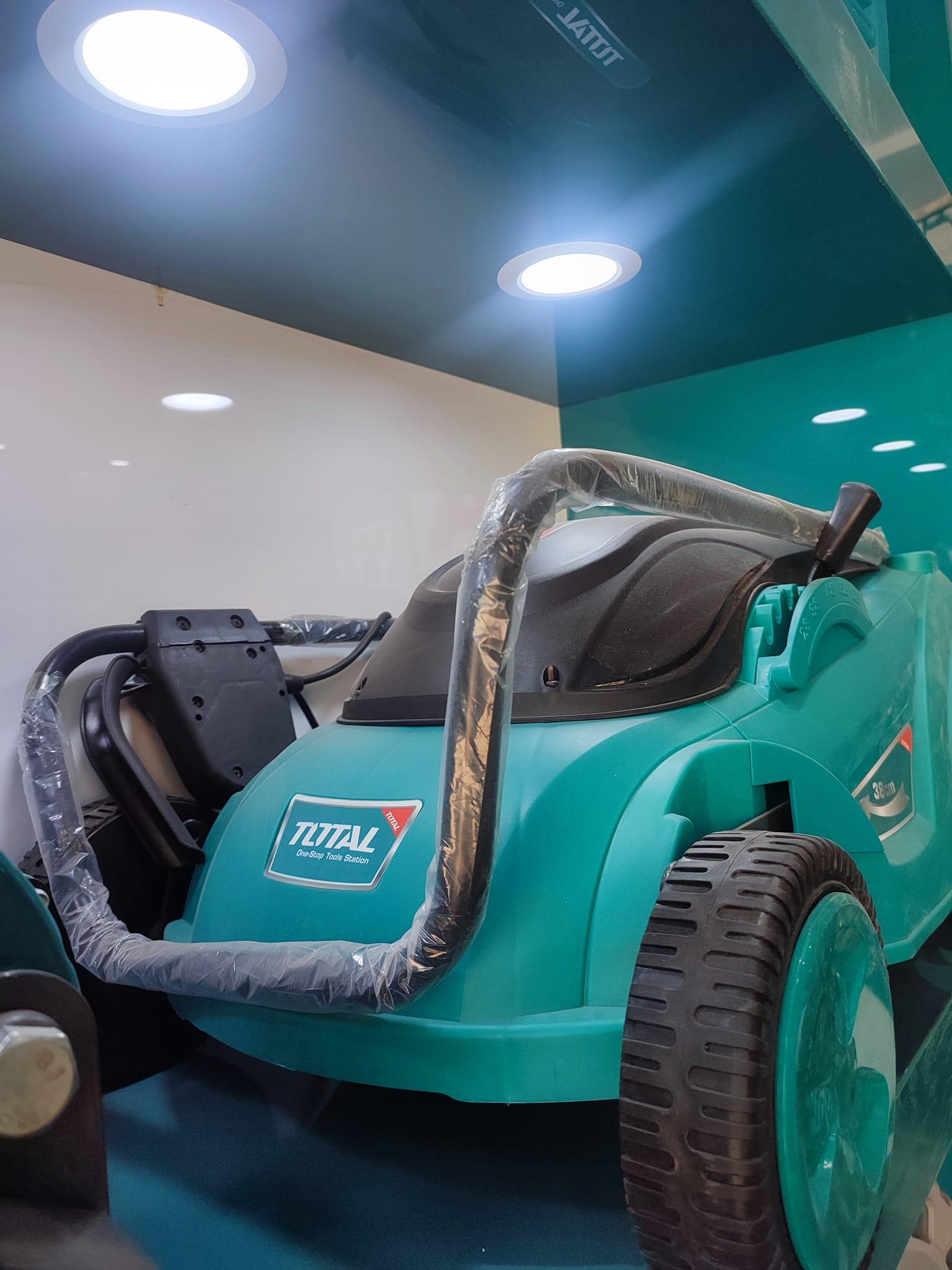 Thông số kĩ thuật -Mã sản phẩm: TGT616151 -Nhà sản xuất: Total -Công suất định mức: 1600W -Điện áp định mức: 220-240V~50Hz -Tốc độ không tải: 2800/phút -Bề rộng vết cắt: 380mm(14.96˝) -Chiều cao khi cắt: 28/38/48/58/68mm -Dung tích túi gom cỏ: 50L -Bảo hành: 6 tháng
