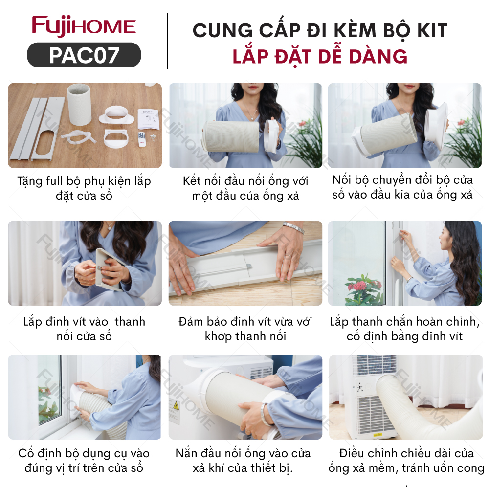 MÁY ĐIỀU HÒA DI ĐỘNG THÔNG MINH FUJIHOME PAC12 [ Công suất 12000BTU, sử dụng cho không gian kín diện tích 20-35m2 ] Đầy đủ phụ kiện lắp đặt - Không tốn kém chi phí