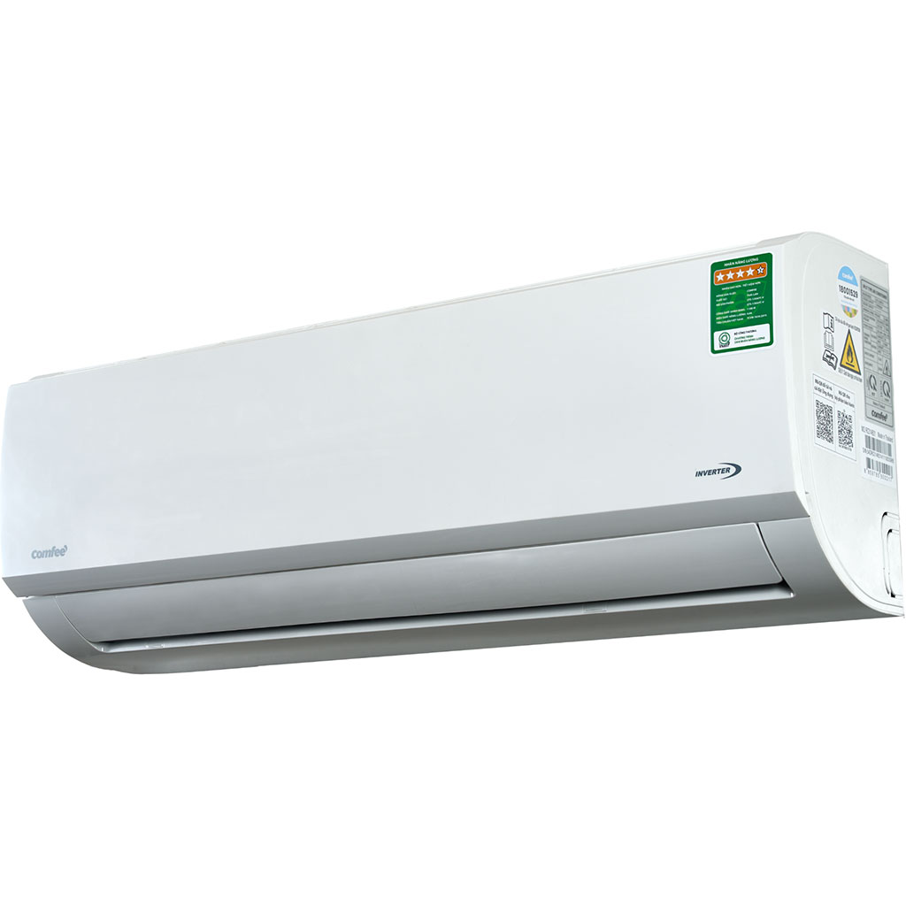 Thế hệ máy lạnh tiên tiến điều khiển bằng giọng nói AI Cool Máy lạnh Comfee Inverter 1.5 HP CFS-13VAFF-V nổi bật với khả năng kết nối Wifi để bạn thực hiện điều khiển qua giọng nói AI Cool và điều khiển từ xa mọi lúc mọi nơi bằng điện thoại thông minh thông qua ứng dụng SmartHome.  Trong đó, tính năng điều khiển bằng giọng nói AI Cool sẽ phát huy công dụng khi bạn không rảnh tay. Lúc này, bạn chỉ cần sử dụng giọng nói là đã có thể thực hiện các chức năng. Còn với tính năng điều khiển từ xa qua điện thoại, chúng sẽ giúp bạn chủ động điều khiển dù đang ở đâu, không cần phải loay hoay đi tìm remote nữa. Với tính năng này, bạn có thể bật máy lạnh trước khi về phòng để tận hưởng sự mát mẻ ngay khi vừa bước vào phòng, hoặc tắt máy lạnh khi đã ra khỏi nhà nếu nhỡ quên.  HYPER TECH - Làm lạnh siêu tốc  Điều hòa Comfee CFS-13VAFF-V sở hữu công nghệ làm lạnh nhanh Hyper Tech cho khả năng tăng tốc máy nén đến mức tối đa. Khi đó, máy có thể đạt độ lạnh 23°C trong thời gian rất ngắn chỉ khoảng 40 giây, giúp bạn nhanh chóng tận hưởng sự mát mẻ bao quanh mình.   FOLLOW ME - Cảm biến vị trí người dùng Điều hòa Comfee CFS-13VAFF-V tích hợp cảm biến nhiệt độ vào remote. Nhờ đó, máy lạnh sẽ tự động điều chỉnh nhiệt độ xung quanh vị trí của bạn dựa trên nhiệt độ đã cài đặt. Nhờ đó, dù bạn ở vị trí nào thì cũng có thể tận hưởng được mức nhiệt độ mát đúng như mong muốn đã cài đặt trên máy.  INVERTER & ECO MODE - Tiết kiệm điện vượt trội Điều hòa Comfee được trang bị công nghệ Inverter với máy nén hoạt động liên tục ở tốc độ cực thấp 12Hz. Nhờ đó, chúng vận hành êm ái, bền bỉ và tiết kiệm điện năng so với các thế hệ trước lên đến 16 lần. Chưa hết, máy còn có chế độ Eco hoạt động với mức tiêu thụ điện năng siêu tiết kiệm nhưng vẫn đảm bảo làm mát vừa đủ, để giảm chi phí tiền điện xuống mức tối đa.  DUAL FILTER - Công nghệ lọc kép thanh lọc không khí   Điều hòa Comfee CFS-13VAFF-V tích hợp bộ lọc kép Dual Filter giúp gia đình bạn yên tâm hít thở bầu không khí mỗi ngày, bảo vệ sức khỏe hô hấp. Cụ thể, không khí khi đi qua màng lọc sẽ được loại bỏ triệt để các hạt bụi có kích thước từ 0.7-0.75 mm. Sau đó, chúng đi qua lớp lọc khử mùi than hoạt tính giúp hấp thụ và phân hủy các khí độc hại như Formaldehyde, Amoniac và Benzen góp phần giảm thiểu khả năng gây dị ứng. **Màng lọc có thể giặt và tái sử dụng để tiết kiệm chi phí. GOLDEN COATING - Chống ăn mòn, chống oxy hóa Cả dàn lạnh lẫn dàn nóng của điều hòa Comfee đều được phủ lớp vỏ bảo vệ cao cấp Golden Coating. Lớp phủ đặc biệt này giúp tăng khả năng chống oxy hóa, chống ăn mòn và ngăn chặn sự phát triển của nấm mốc, vi khuẩn. Nhờ đó, điều hòa Comfee chống chịu được nhiều điều kiện môi trường, dù là khắc nghiệt nhất để bạn yên tâm sử dụng dài lâu. ACTIVE CLEAN - Tự làm sạch dàn lạnh 3 bước khép kín Điều hòa Comfee CFS-13VAFF-V có tính năng Active Clean tự động làm sạch dàn lạn để chúng luôn khô thoáng, đảm bảo thổi ra luồng khí mát mẻ, sạch sẽ. Cụ thể, công nghệ này sử dụng hơi nước tại dàn lạnh để đóng băng các loại bụi bặm, nấm mốc, dầu mỡ,... bám trên dàn tản nhiệt. Sau đó đột ngột thổi để tăng nhiệt độ làm băng tan, cuốn trôi các chất bẩn theo dòng nước. Cuối cùng, máy thực hiện sấy khô để dàn lạnh sạch sẽ trở lại như lúc ban đầu.    Tự chẩn đoán lỗi thông minh Điều hòa Comfee CFS-13VAFF-V có tính năng tự chẩn đoán lỗi thông minh. Nhờ đó, mỗi khi máy lạnh có dấu hiệu bất thường, thiết bị sẽ tự động nhận diện và báo lỗi lên màn hình hiển thị để người dùng kịp thời nhận biết để tự sửa những lỗi đơn giản, hoặc kịp thời gọi thợ đến bảo trì đối với những lỗi phức tạp.   Gas R32 làm lạnh nhanh, an toàn và thân thiện môi trường Điều hòa Comfee CFS-13VAFF-V sử dụng môi chất làm lạnh R32 thế hệ mới cho công suất tăng cường để làm mát nhanh hơn, làm lạnh sâu hơn nhưng vẫn đảm bảo tiết kiệm năng lượng.  Đặc biệt, Gas R32 có chỉ số khí thải trong mức an toàn, không chứa chất gây suy giảm tầng Ozone nên góp phần rất lớn trong việc bảo vệ hành tinh xanh của chúng ta.