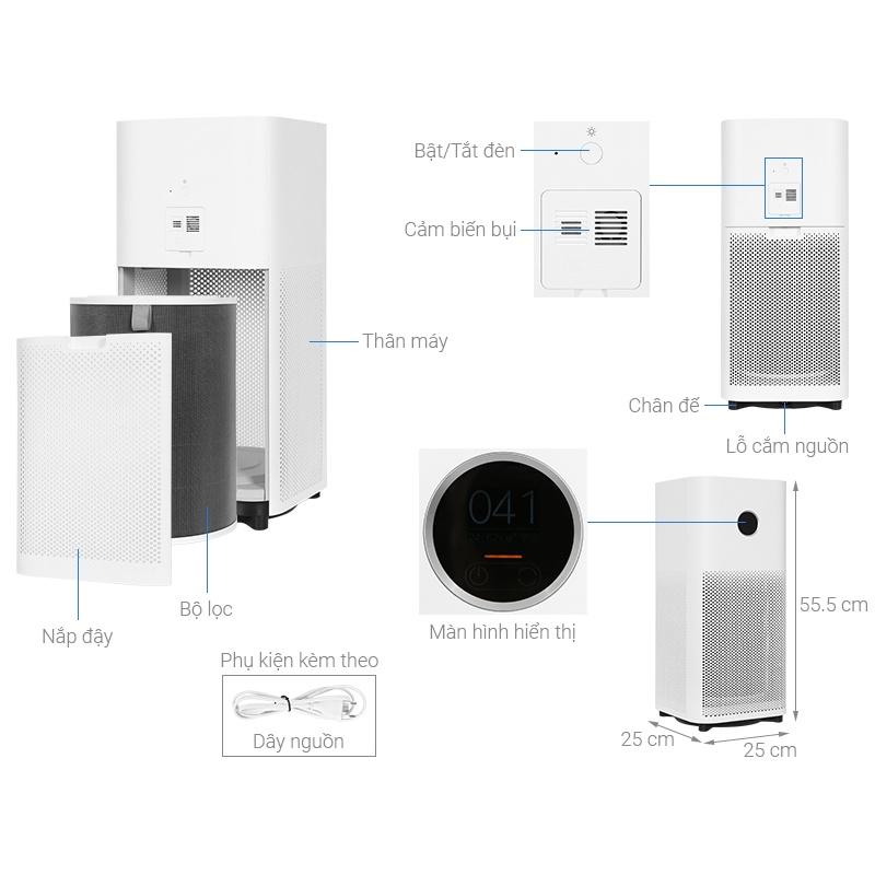 Máy lọc không khí Xiaomi 4 Lite Thông số kỹ thuật: Thương hiệu Xiaomi Model AC-M17-SC PM CADR 120m3/h Điện áp định mức 100 -240V Độ ồn 35.8dB Công suất định mức 32W Kích thước