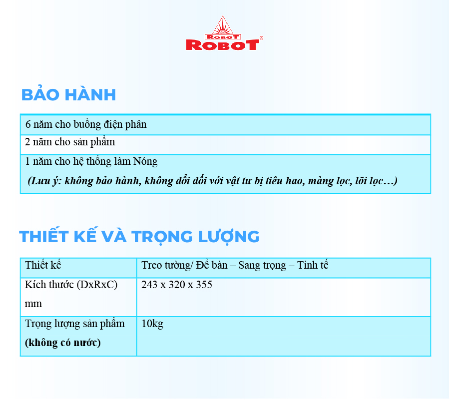 Với mong muốn nhiều gia đình Việt có thể sử dụng nước điện giải iON kiềm với chi phí hợp lý để bảo vệ sức khỏe, sắc đẹp & nâng cao chất lượng cuộc sống, ROBOT mang đến sản phẩm “Chất lượng Quốc tế - Giá thành Việt Nam”, phù hợp với mức sống của nhiều người. Tiết kiệm cho người tiêu dùng đến hơn một nửa chí phí so với máy nhập khẩu chỉ từ 30 – 50%, nhưng sở hữu nhiều ưu điểm, tính năng vượt trội, chất lượng cao.