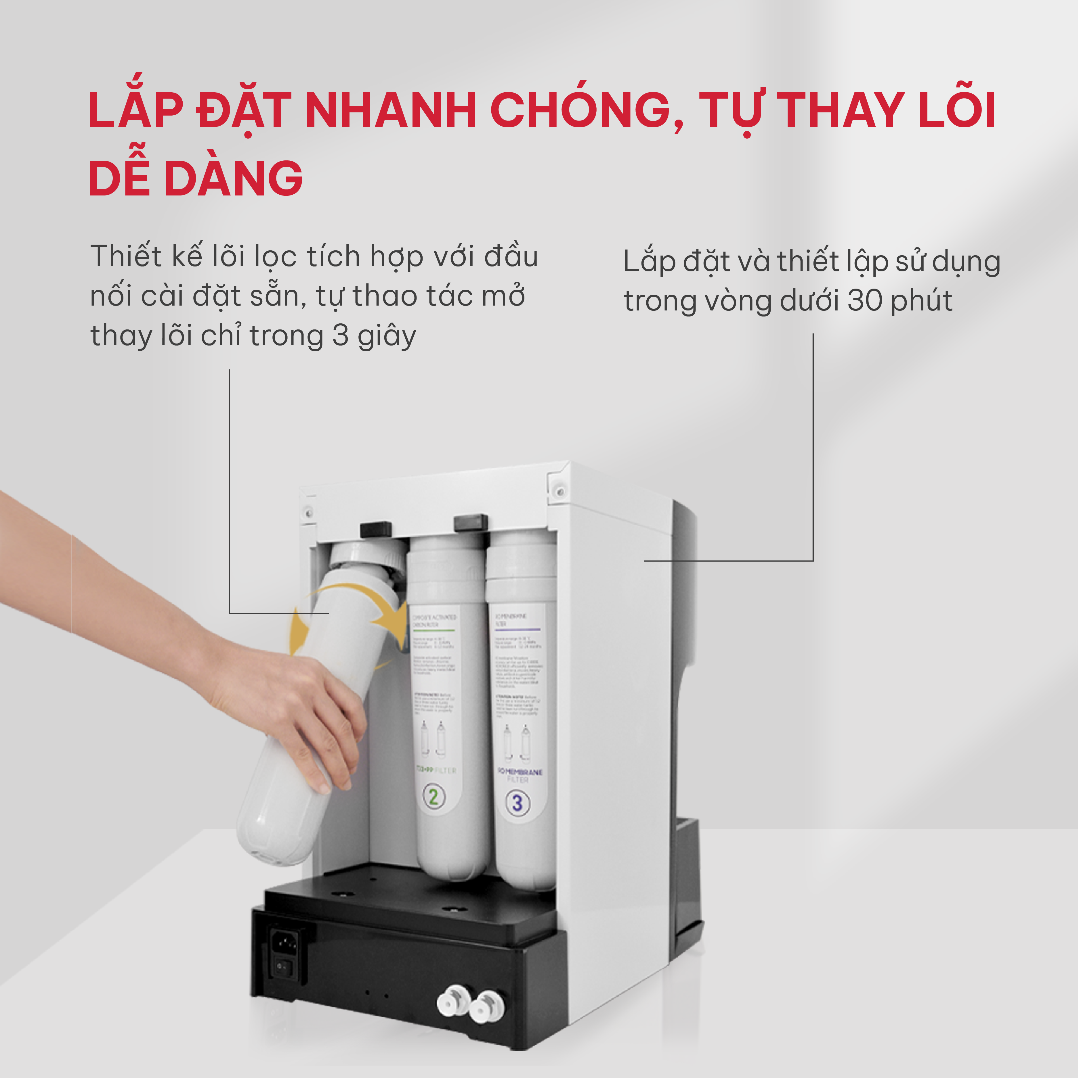 ƯU ĐIỂM MÁY LỌC NƯỚC - 3 chức năng nóng, lạnh, lọc - Tiết kiệm điện năng 30% với công nghệ bảo vệ nhiệt đa lớp - Hệ 9 lõi lọc mạnh mẽ - Màng
