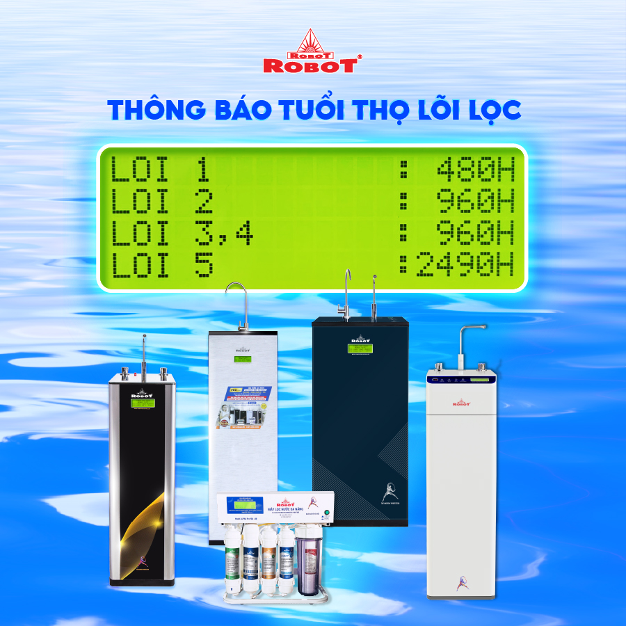 • Công nghệ RMC – LCD độc quyền, biết được chất lượng nước trước & sau lọc     Bộ vi mạch RMC-LCD thông minh thiết kế phát minh của ROBOT, mọi chi tiết vận hành máy được hiển thị trên màn hình LCD, cảnh báo mọi rủi ro cho người sử dụng   Tuổi thọ lõi lọc được tính theo lưu lượng nước sử dụng, không tính theo thời gian ghim điện như các máy thông thường