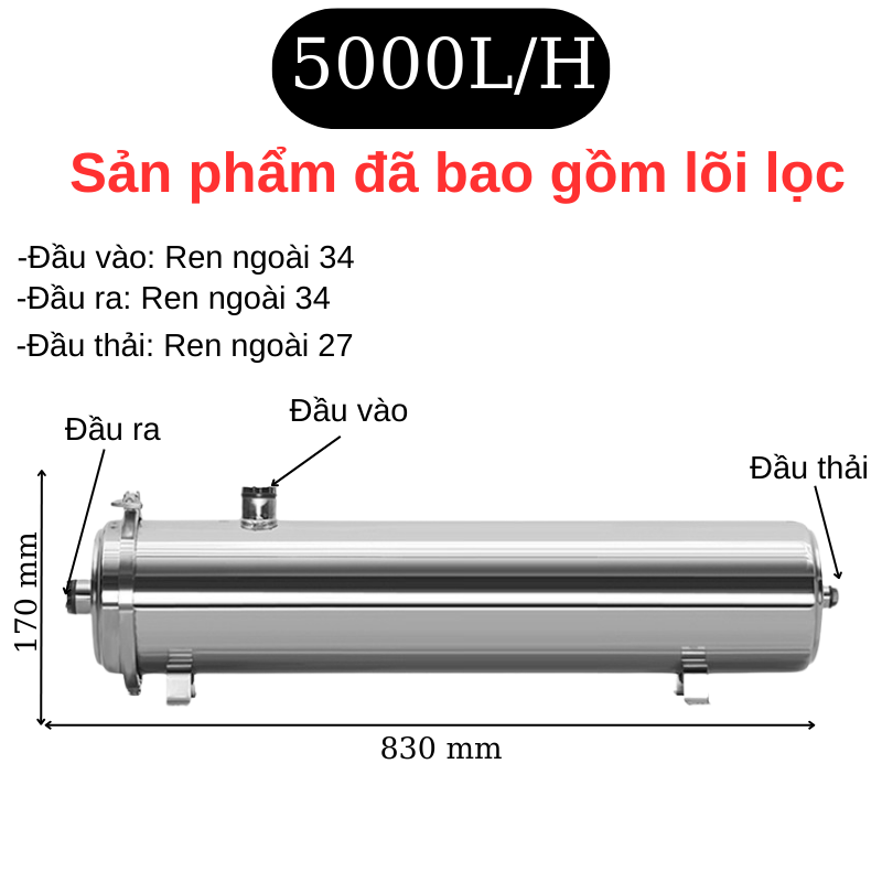 -Vỏ màng: Bảo vệ màng UF, làm từ inox 304 , chịu được áp lực nước và môi trường ẩm ướt.