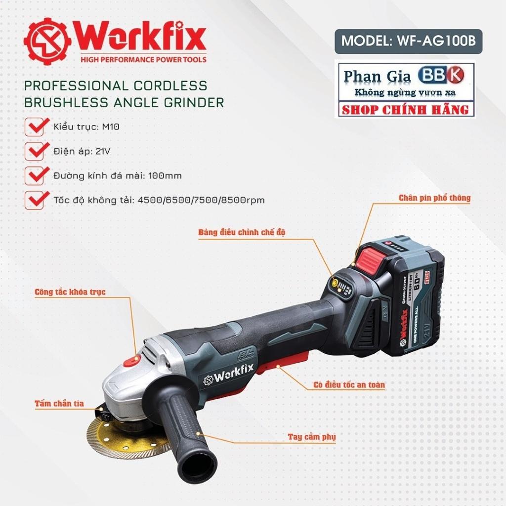✨Máy Mài Pin WORKFIX 21V, Không Chổi Than, Pin 15 Cell, Lõi Đồng, Chống Khởi Động Lại, Tự Ngắt Khi Rơi Máy
