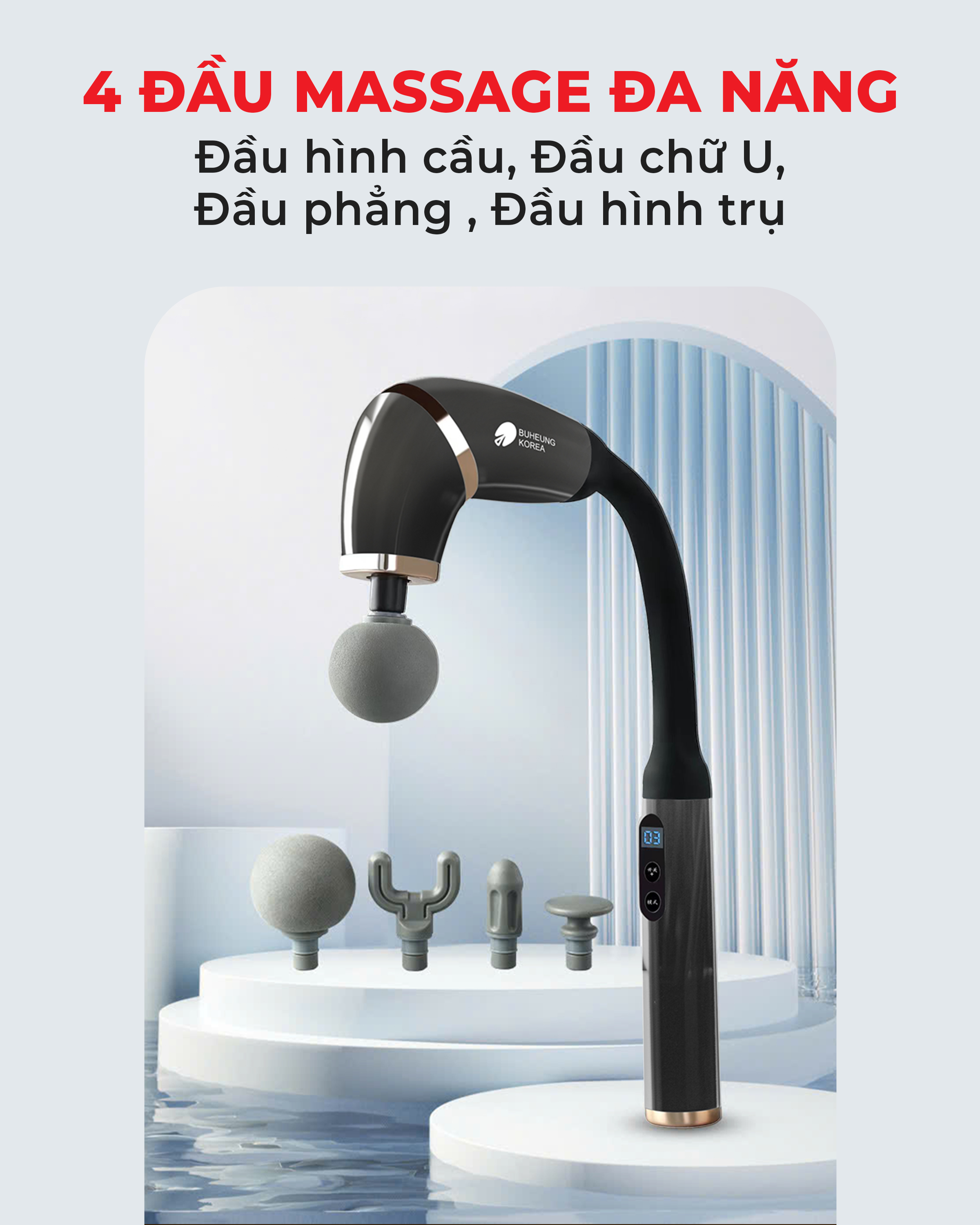 ✨Máy massage cầm tay Buheung MK-229, thiết kế công thái học, 4 đầu massage, BH chính hãng 12 tháng