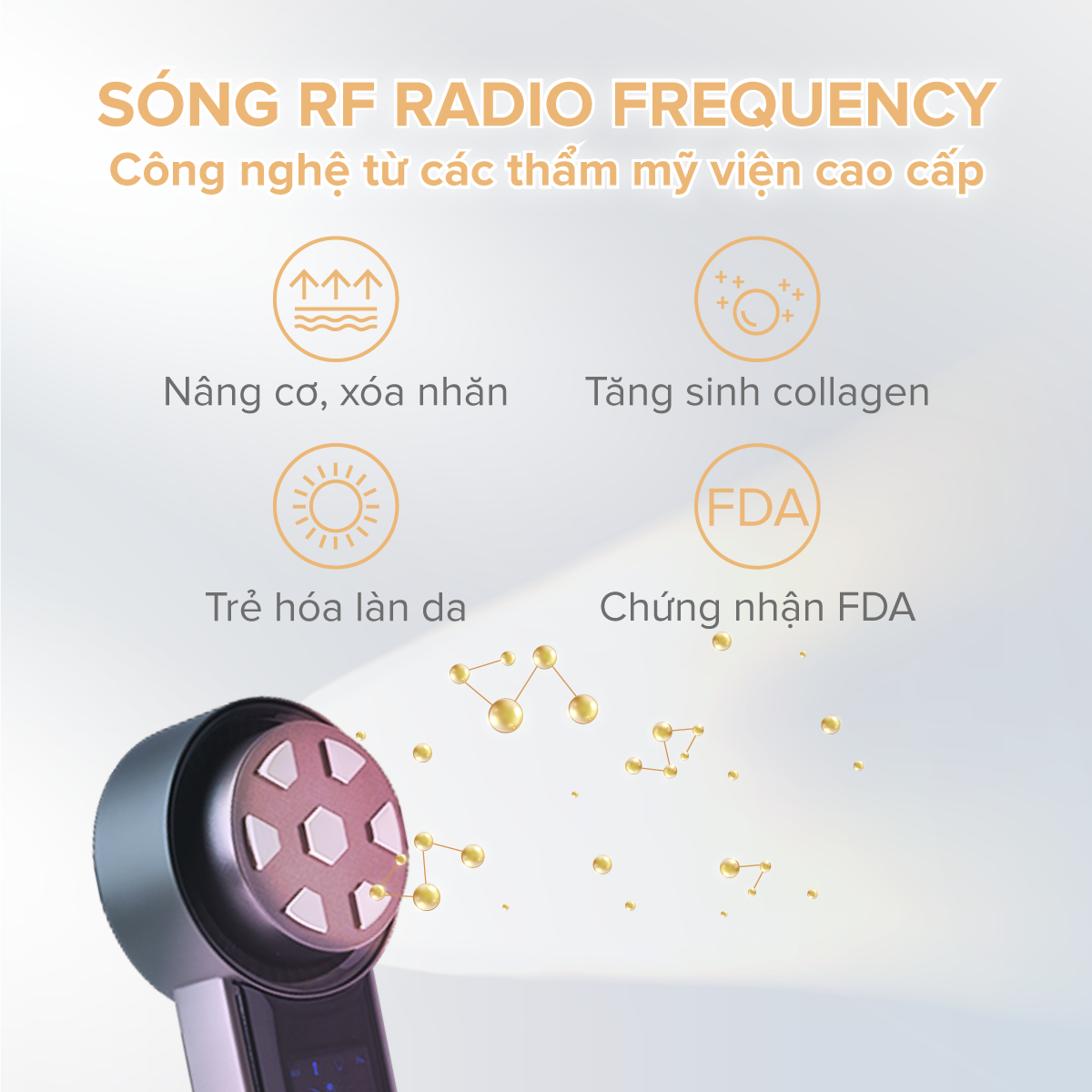 Công nghệ #RF (Radio) - Quyền năng trẻ hóa làn da với tần số 1 MHz kích hoạt các phân tử da ở lớp hạ bì, thúc đẩy trẻ hóa làn da.