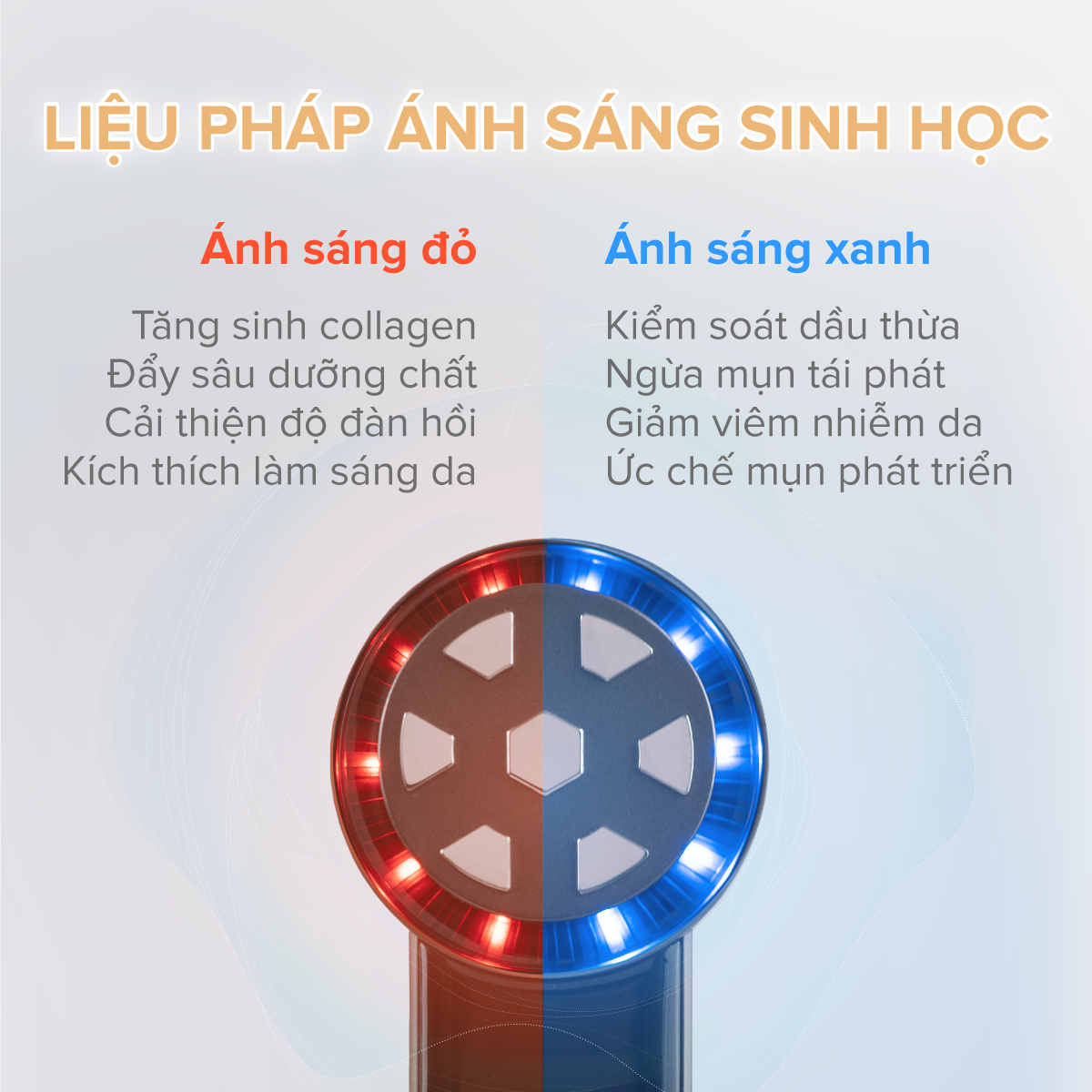 Ánh sáng xanh làm săn chắc da và ngừa mụn, hỗ trợ cải thiện các vấn đề về mụn, giảm kích ứng da sau khi sử dụng.