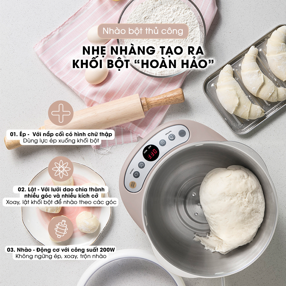 - Đa năng: Nhồi và ủ tự động 300-800 gram bột; tính năng hẹn giờ nhồi và giờ bột nghỉ