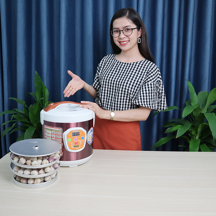 Ưu điểm của nồi làm tỏi đen Nikio NK-686: Công nghệ lên men tự động Nồi làm tỏi đen tùy chỉnh Nhật Bản Nikio NK-686 được thiết kế theo tiêu chuẩn chất lượng mới nhất của năm, với công nghệ lên men tỏi đen hoàn toàn tự động giúp bạn yên tâm và thảnh thơi trong thời gian làm tỏi đen. Với nồi làm tỏi đen Nikio, bạn chỉ cần bỏ tỏi vào nồi, cài đặt thời gian lên men thích hợp và chờ đợi những sản phẩm tỏi đen thơm ngon nhất mà không cần quan tâm gì. Đối lưu hơi nóng 360 độ quanh nồi Máy làm tỏi đen Nikio NK-686 có chu trình hoạt động đối lưu hơi nóng 360 độ, được thiết lập bởi các kỹ sư tài ba của Nhật Bản, thực hiện quá trình lên men từ bên trong. Nhờ đó, mà hơi nóng được tản đều quanh thân nồi, giúp quá trình lên men cực kì nhanh, chất lượng tỏi đen đồng đều màu và thơm ngon hơn. Kiểm soát nhiệt bằng vi mạch hiện đại Nikio NK-686 có khả năng điều khiển bởi bộ vi mạch kiểm soát nhiệt và độ ẩm hoàn toàn tự động, an toàn. Ngoài ra, máy còn được trang bị van điều chỉnh có thể tự động điều chỉnh nhiệt độ, độ ẩm và áp suất khi lên men. Nhiệt độ bên trong nồi luôn được kiểm soát ở mức độ cho phép, giúp tỏi đen sau khi làm ra không bị quá nhiệt gây khét hay đắng. 2 chế độ lên men và tùy chỉnh thời gian Nồi làm tỏi đen Nikio Nk-686 có 2 chu trình lên men. Cho phép bạn lên men được tỏi một nhánh hoặc tỏi nhiều nhánh. Chu trình lên men tỏi của dòng nồi Nikio NK-686 mới này, cho phép bạn cân chỉnh được thời gian lên men thích hợp với kích cỡ từng loại tỏi to hay nhỏ.