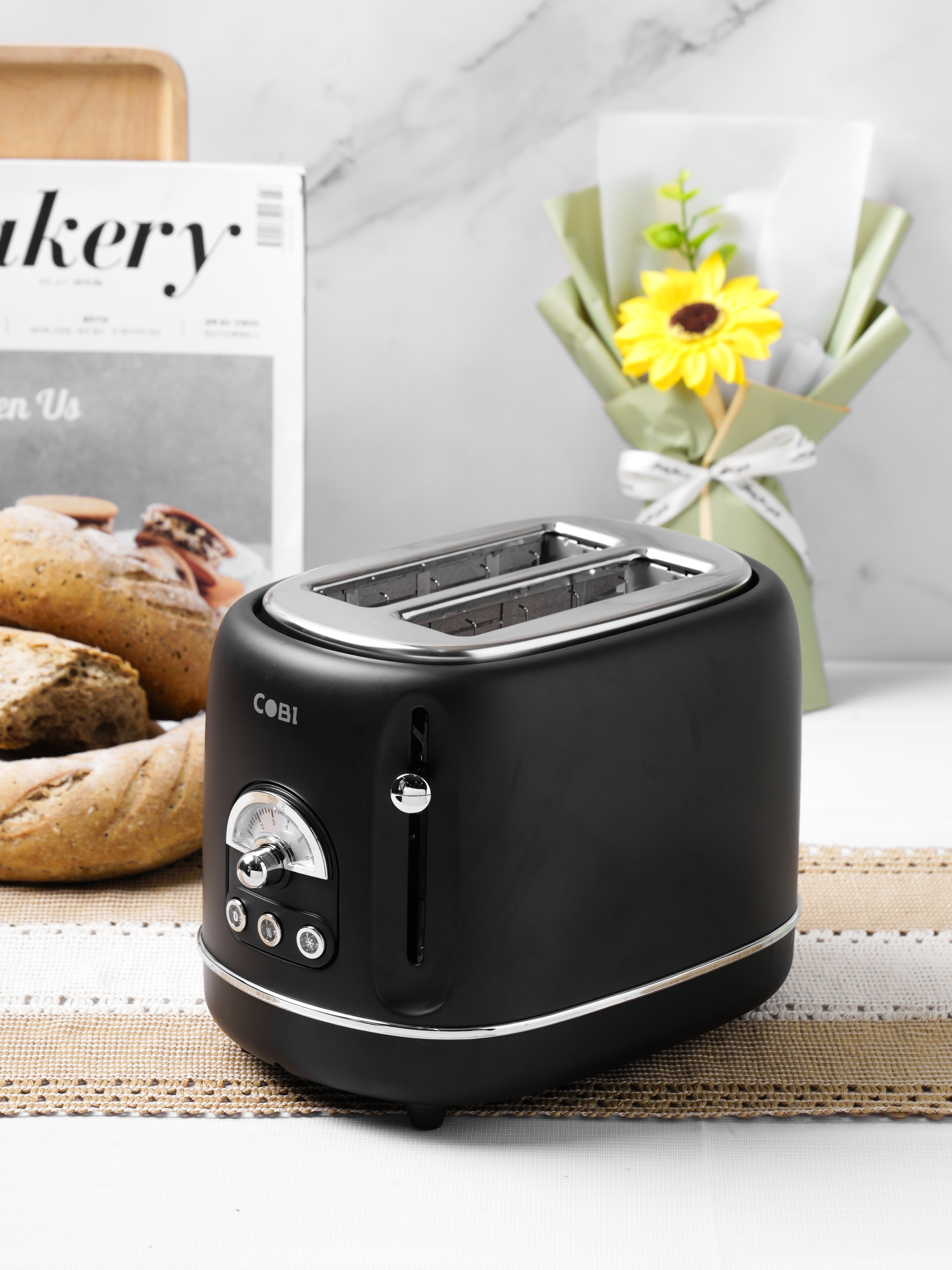 Công suất 900W cùng 8 mức điều chỉnh nhiệt độ nướng khác nhau Chất liệu thép không gỉ và nhựa, an toàn với thực phẩm không chứa BPA cùng 2 khe nướng Định tâm tự