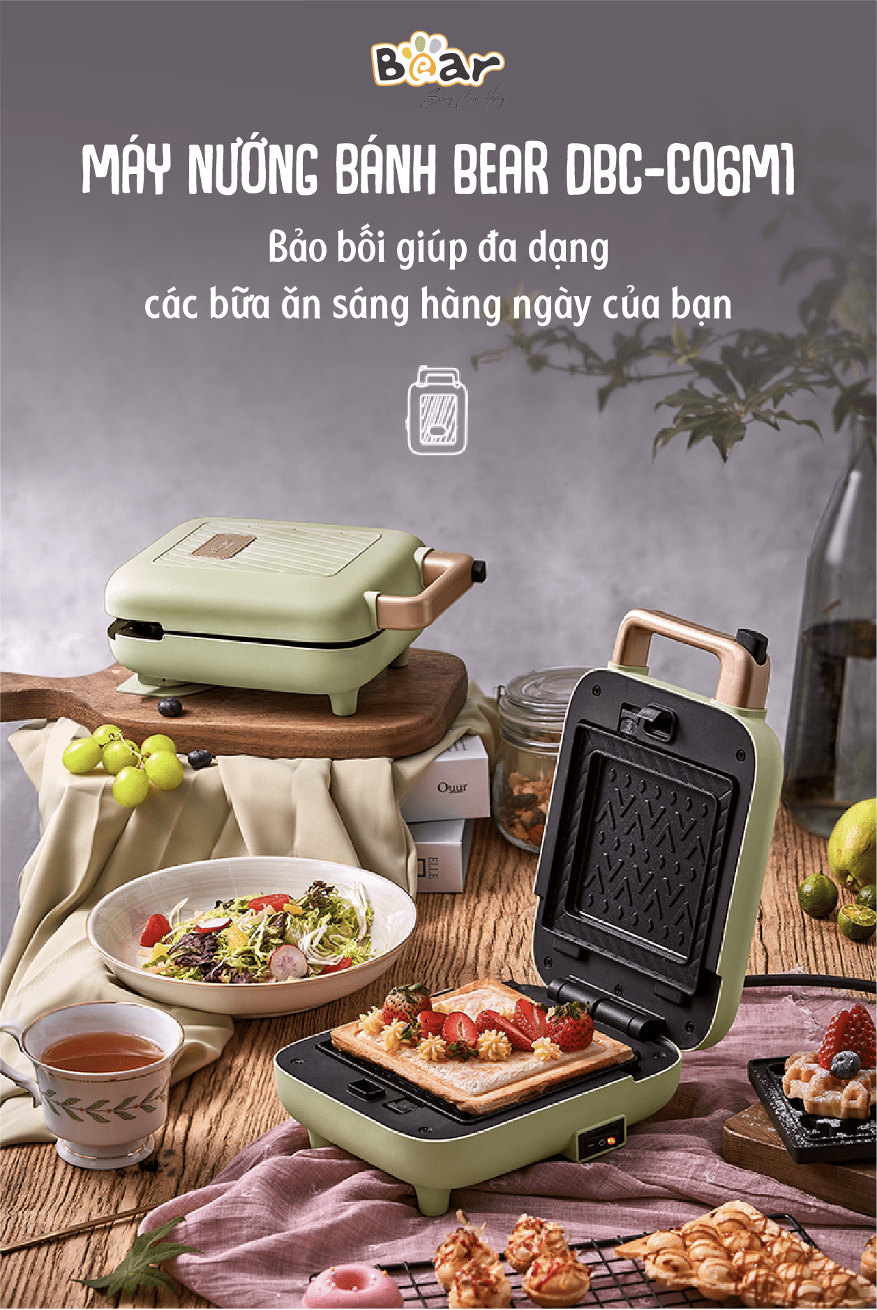 Máy Nướng Bánh 2 Khay Đa Năng Bear DBC-C06M1 - Làm Bánh Sandwich, Crepe, Waffle zalo 0986588655