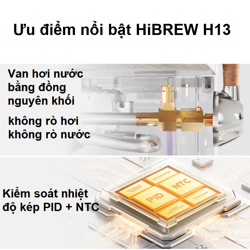- Máy pha cà phê Espresso chuyên nghiệp HiBREW H13 có công suất hoạt động là 1350W, áp suất 20 bar. Đáp ứng được nhu cầu sử dụng tại các văn phòng, quán cà phê, khách sạn... Hệ thống gia nhiệt tiên tiến "NTC"